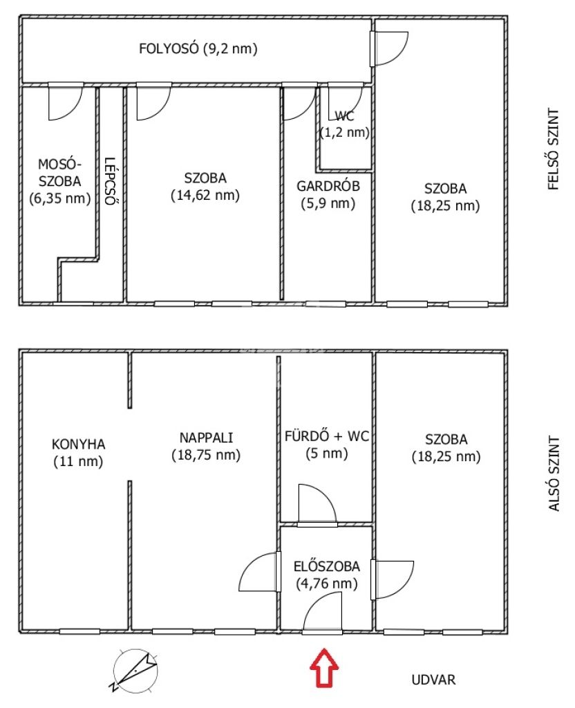 -Belmagasság: 5,2 m, tágas, levegős térérzet - alsó szint: 2,55 m, felső szint: 2,18 m.