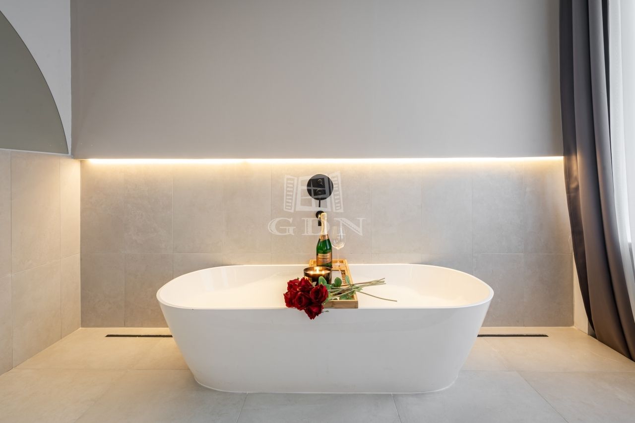 A magas minőségű bútorok, elektronikai eszközök és berendezési tárgyak a vételár részét képezik.