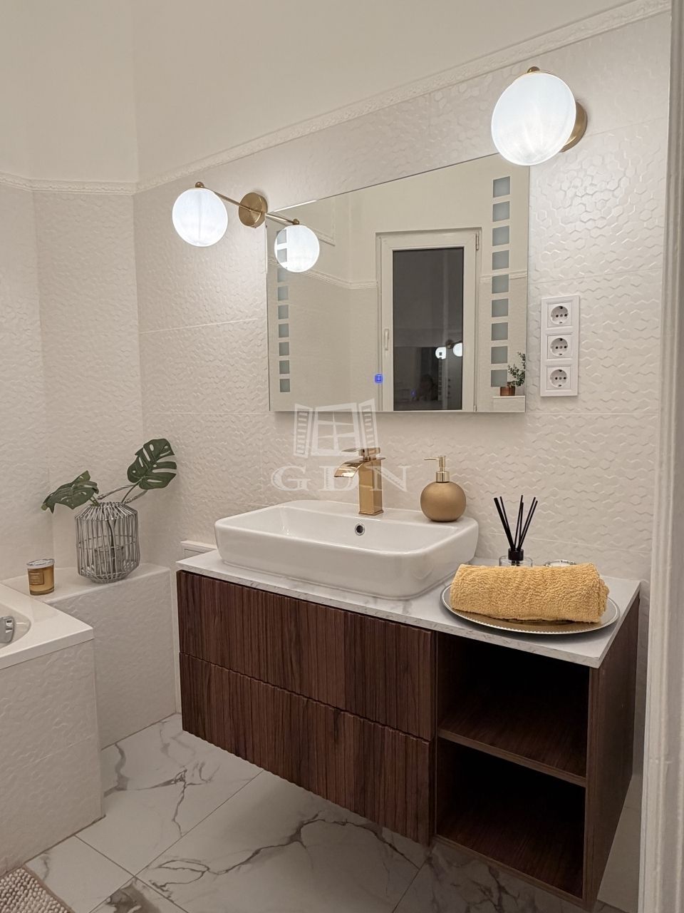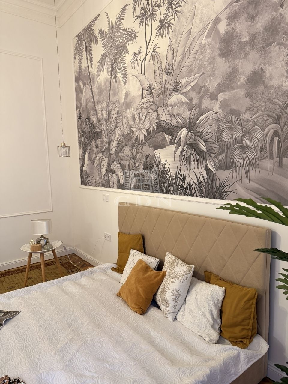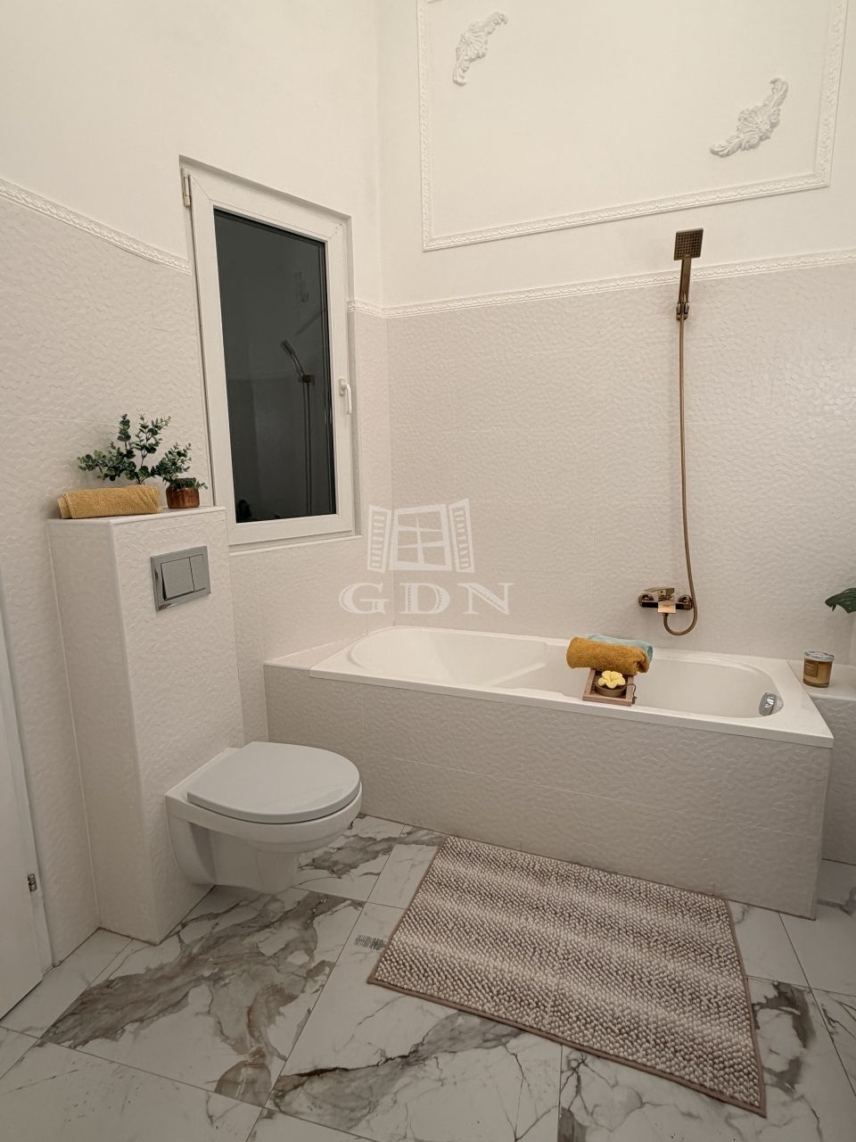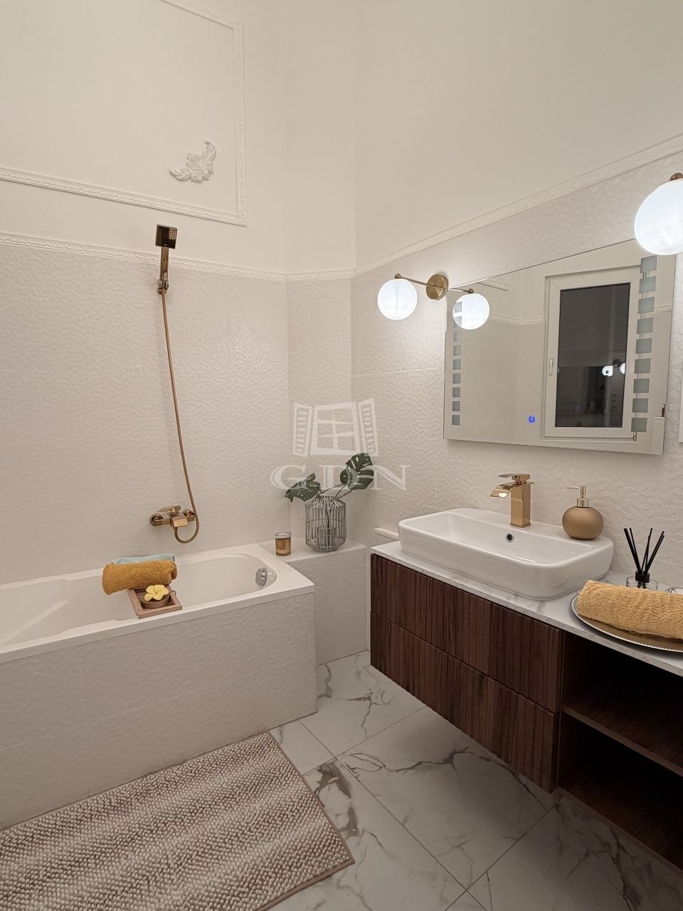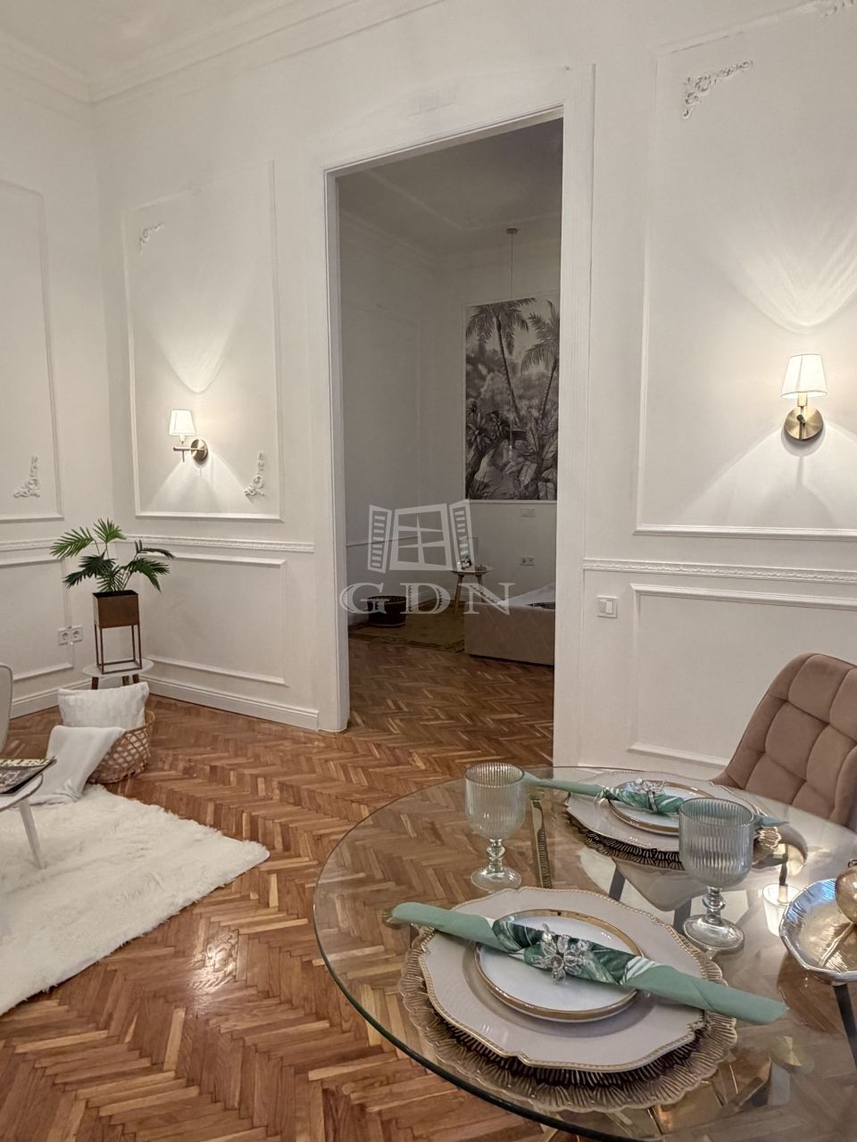 A lakás tágas belmagassággal, elegáns stukkókkal, halszálkás parkettával, valamint hangulatos elektromos kandallóval rendelkezik. A nagy méretű ablakok bőséges természetes fényt biztosítanak. A modern komfortot hűtő-fűtő klímaberendezés szolgálja. Az ingatlan azonnal költözhető.