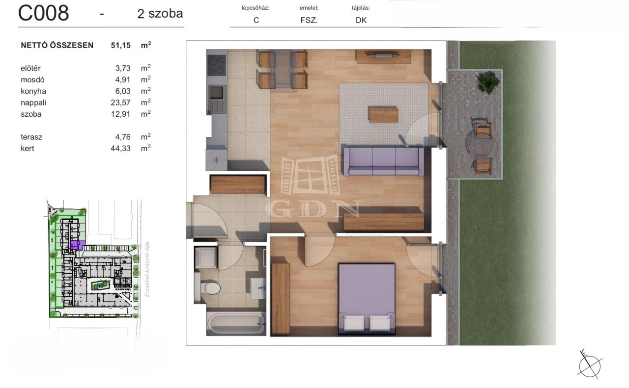 | 51 m2Alapterület | 2 Szoba |