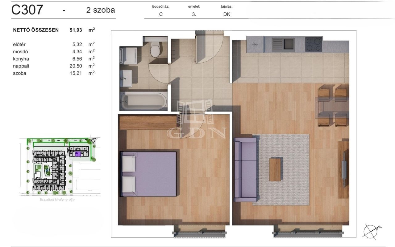Eladó Lakás (téglaépítésű) Budapest XIV. kerület - Erzsébet Residence C307