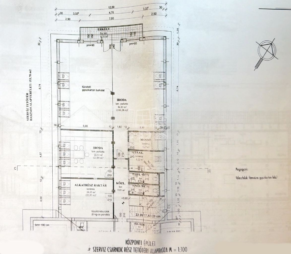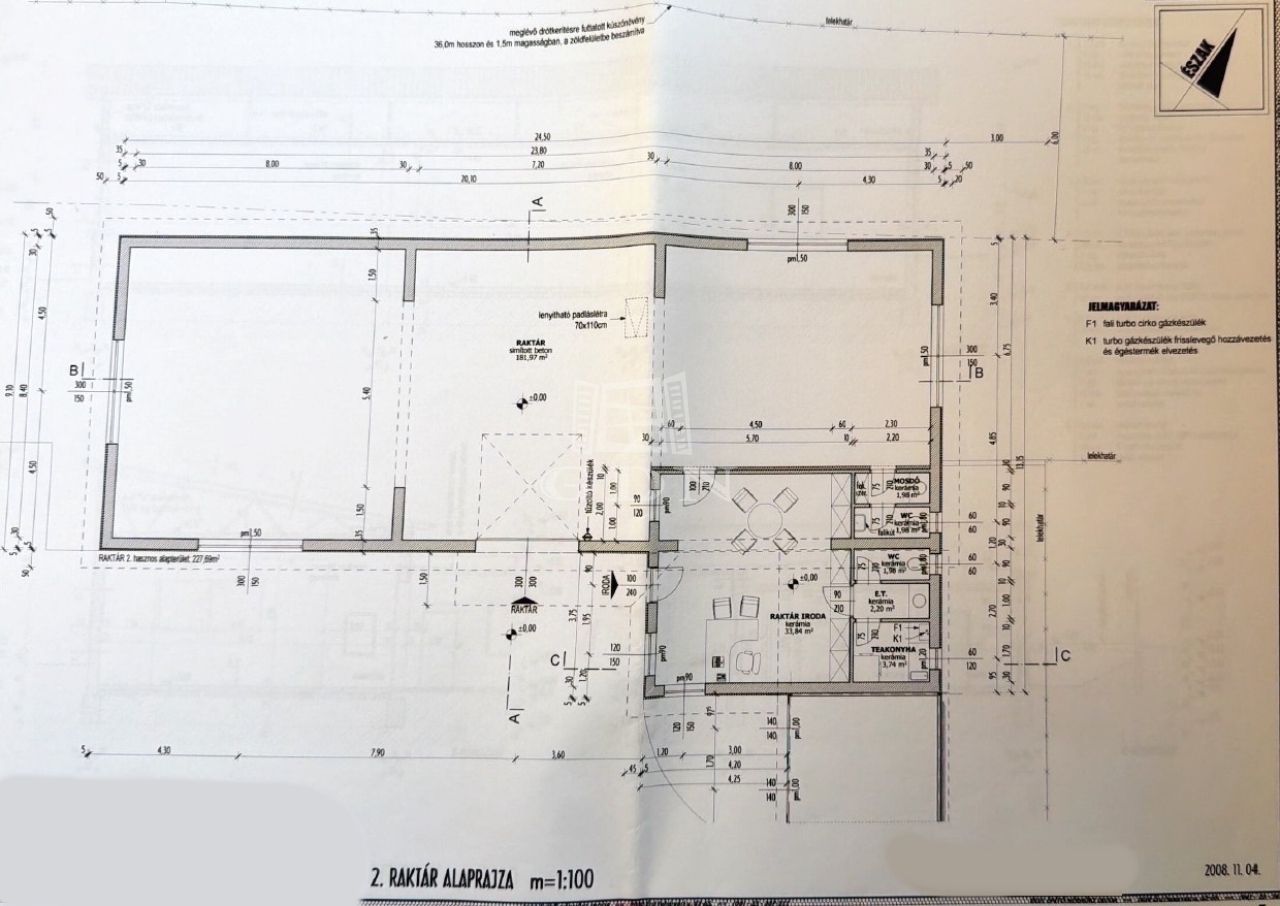 Itt is található további alkatrészraktár/tárolóhelyiség/irattár stb. és a kiszolgáló helyiségek, így a műszaki és adminisztratív területek jól elkülöníthetők.