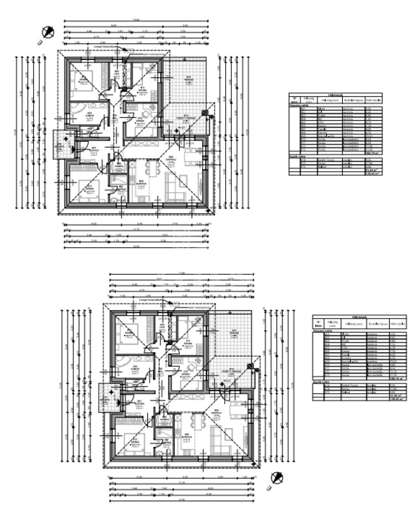 szoba 8,54 m2, szoba 11,56 m2, szoba 11,56 m2, terasz 26,42 m2.