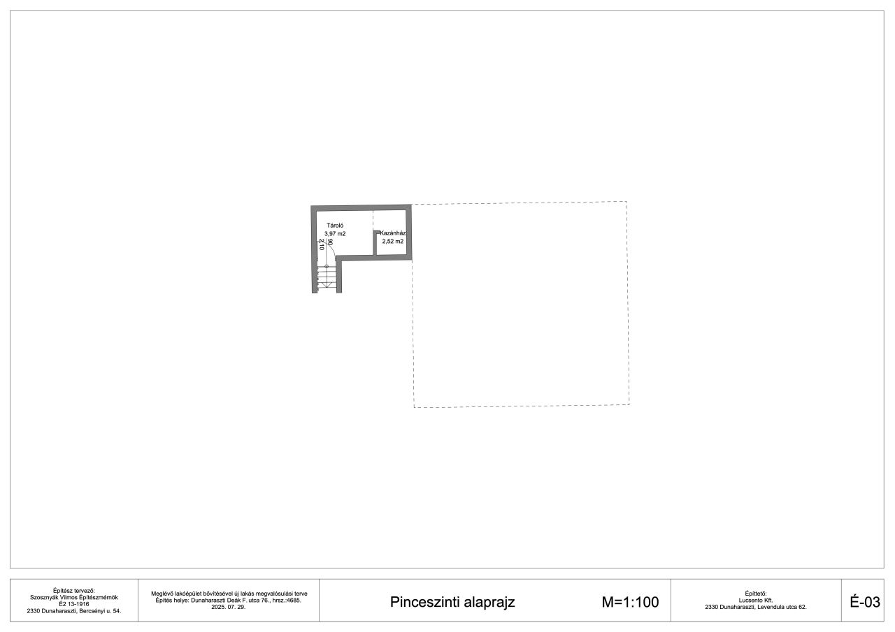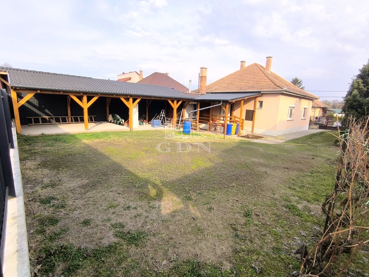 A telken található még, egy 16,5 nm-es fedett gépkocsi beálló +33 nm-es fedett kerti tároló.