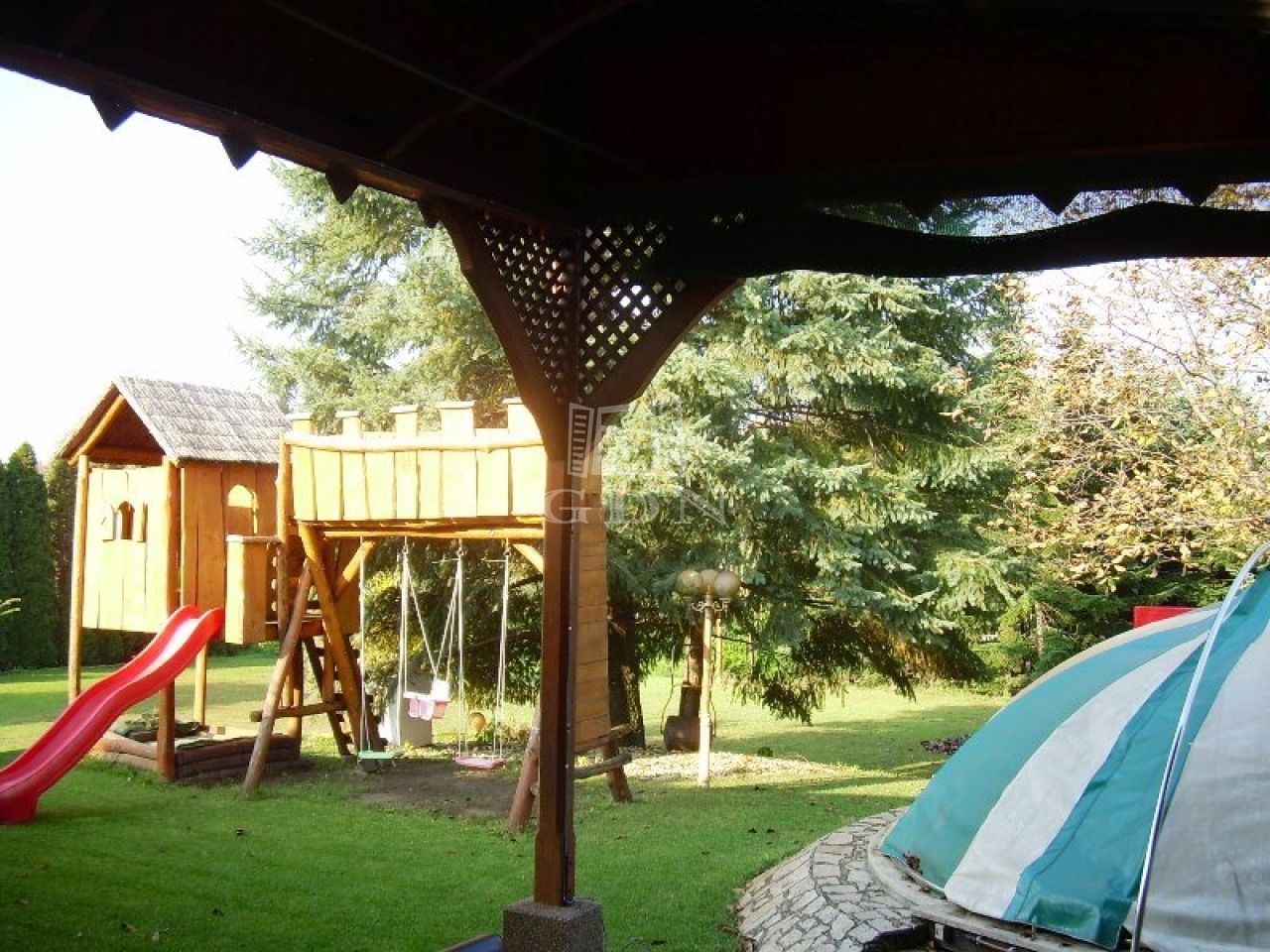Az ÖNTÖZŐRENDSZERREL kiépített, parkosított és terméskővel burkolt udvaron több autó parkolására alkalmas FEDETT AUTÓBEÁLLÓ van, valamint tárolók, teraszok, játszótér, kültéri medence. Az 1. lakrész alatt található 15 m2 BOLTÍVES PINCE. A telken lévő kis FENYŐERDŐBEN 20 m2 erdei faház is helyet kapott, ami egyedi ritkaság az ingatlan elhelyezkedését tekintve.