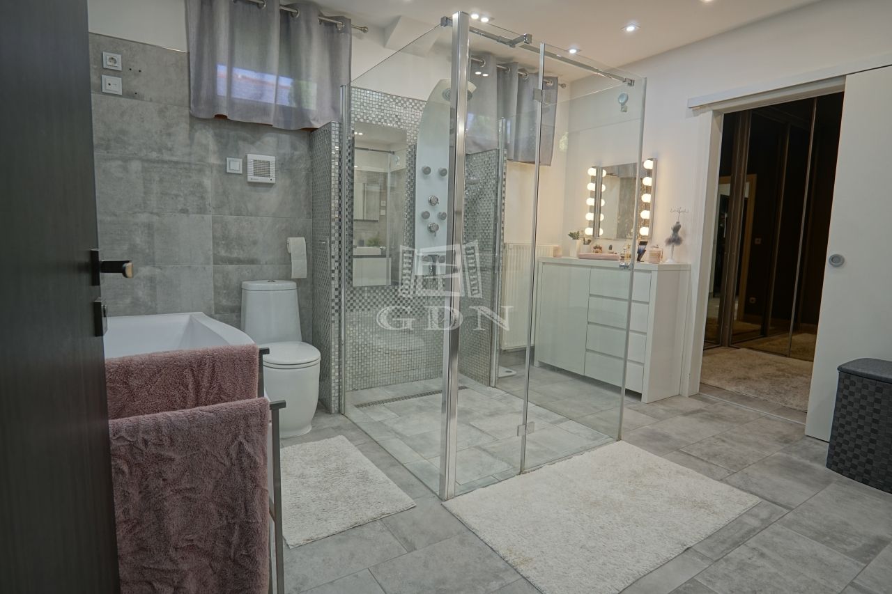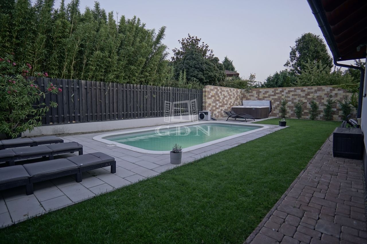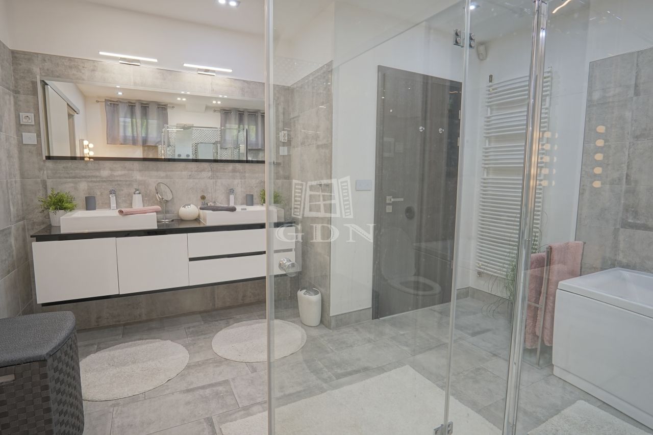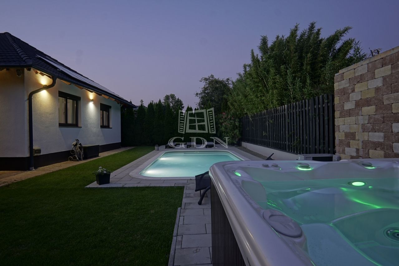 Dunakeszin kínálunk eladásra 2006-ban épült, igényesen kivitelezett, önálló családi házat, 709nm-es telken. Nagyon ízléses és egyedi kialakításának köszönhetően, élhető terek, a hálószobákhoz tartozó gardrób helyiségek, tágas fürdőszobák növelik a komfortot. A földszinten magas minőségben felszerelt konyha, nappali, két szoba, fürdőszoba-gardrób helyiség, az emeleten nappali, három szoba, fürdőszoba kapott helyet. A hangulatos kertben medence, jakuzzi és a ház alatt található borospince fokozza az otthon kényelmét. Az öntöző rendszer fúrt kútról működik, az energiahatékonyságról napelem rendszer gondoskodik.