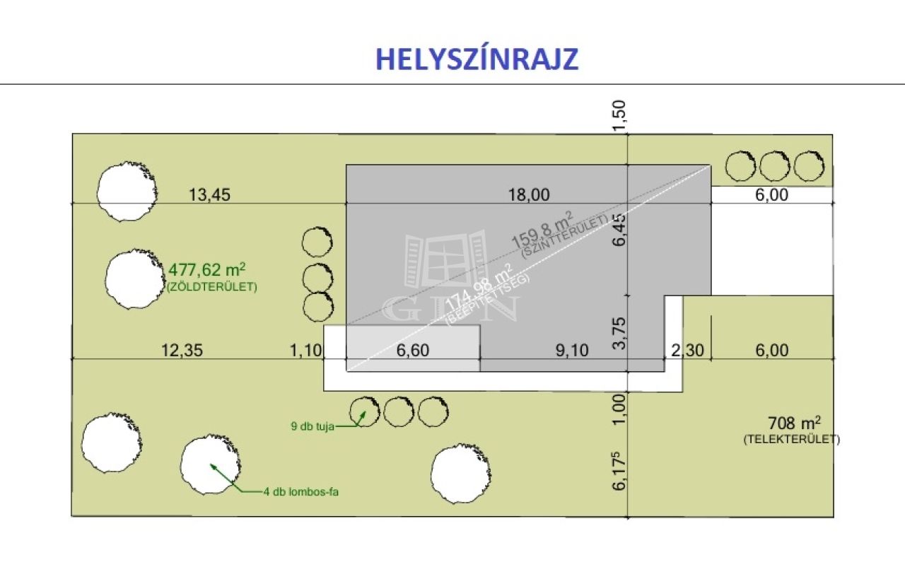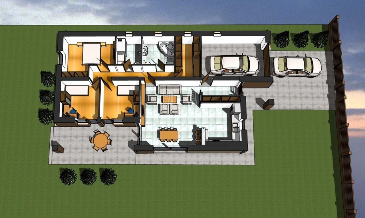 A ház nettó 125 nm, plusz a 24 nm terasz. Mindez 708 nm telken.