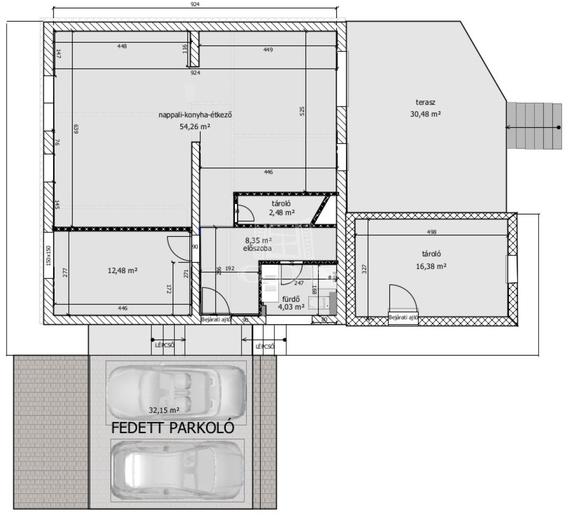 • Hatalmas, fedett kocsibeálló és térkövezett udvar