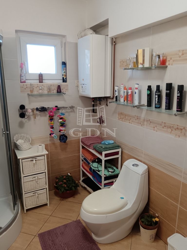 Az emeleten két tágas hálószoba, egy sarokkádas fürdőszoba, valamint egy világos nappali fogad.