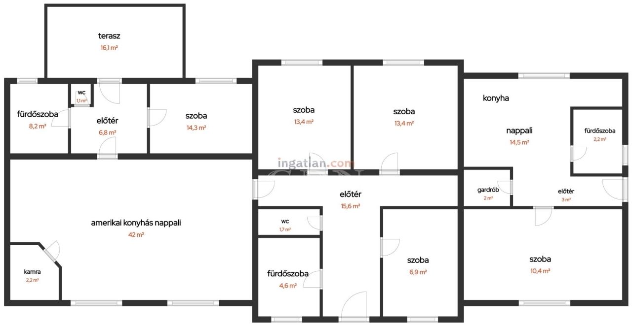 A nagyobb, 130 m²-es lakrészben egy 42 m²-es, amerikai konyha-nappali vár. Ez az a hely, ahol a családi élet igazán történik. ✨
