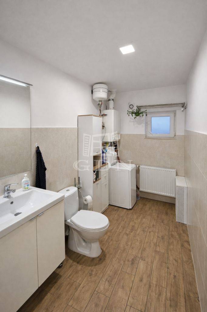 Fűtésről gázcirkó gondoskodik, radiátoros hőleadókkal, emellett klíma és kandalló is rendelkezésre áll.