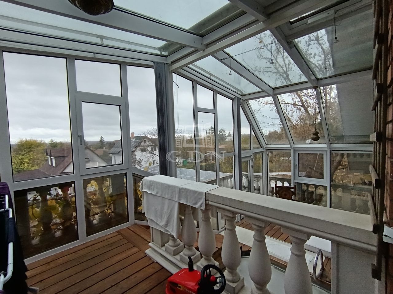 - földszint: előtér, szoba, második előtér, amelyből egy fürdőszoba és az amerikai konyhás nappali nyílik. A nappaliból ki lehet menni a beépített teraszra, téli kert hangulattal bír, fűthető tér, amelyen egy jakuzzi is elhelyezésre került.