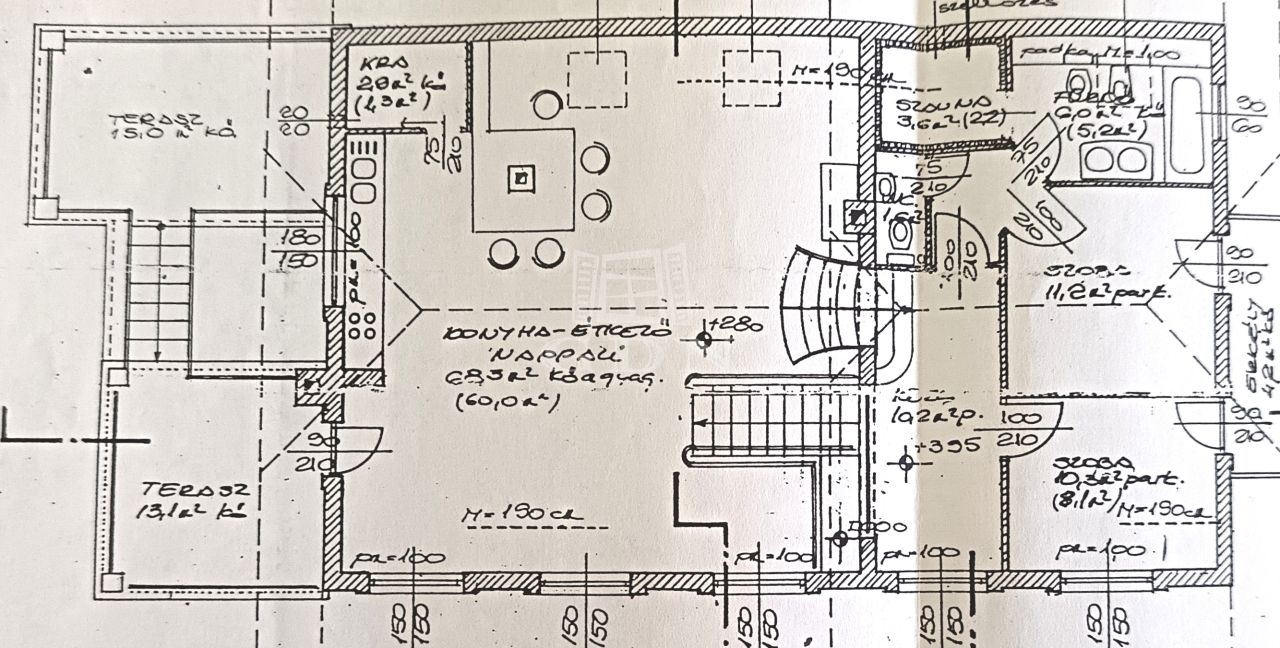 - félszuterén rész, külön bejárattal: előtér, szoba, konyha nappalival, fürdőszoba.