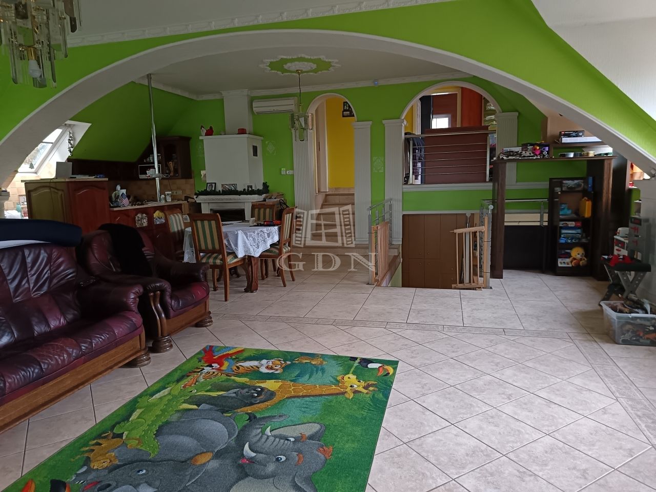Az épület alkalmas 2 generáció együttélésére, a 2 konyha, 3 fürdőszoba, és 6 szoba felosztásnak köszönhetően. Két külön bejárattal bír. Különálló kerti tárolók. Fedett kocsibeálló, és garázs is rendelkezésre áll.