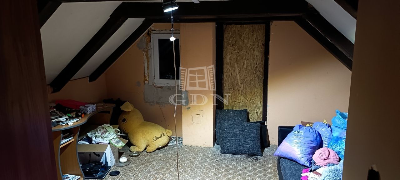 A tetőtéri rész beépített, a nyílászárók itt is újak, hőszigeteltek. Egy előtér és egy szoba került kialakításra.