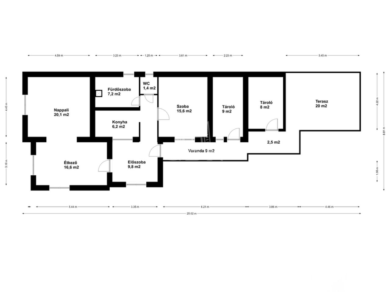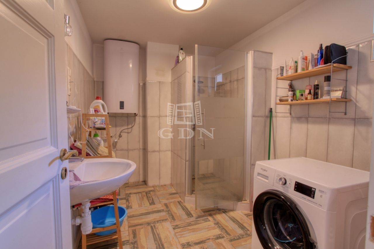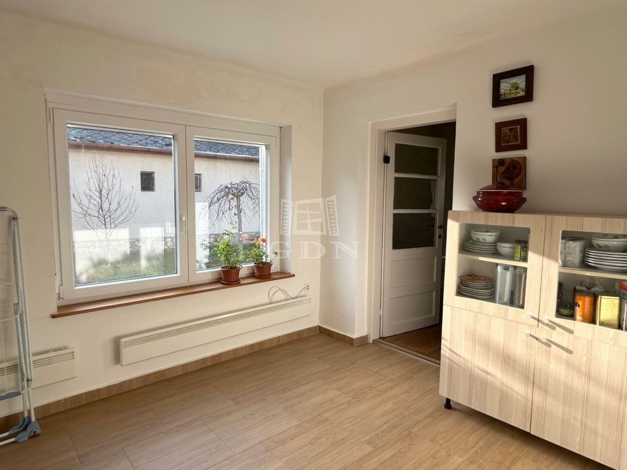 A ház 37 m2-es nappali-étkező, előszoba-étkező, konyha, fürdőszoba, wc, közlekedő helyiségekből áll. További hálószoba leválasztással kialakítható, illetve a verandáról nyíló jelenleg tároló funkciót ellátó helyiség is alkalmas lehet szoba kialakítására. Az épülethez csatlakozik egy tároló és egy 20 m2-es terasz, illetve a ház mellett található egy külön épület, fedett kiülő és pince. A kert gondozott, öntözése ásott kútból lehetséges. Ár: 82 MFt