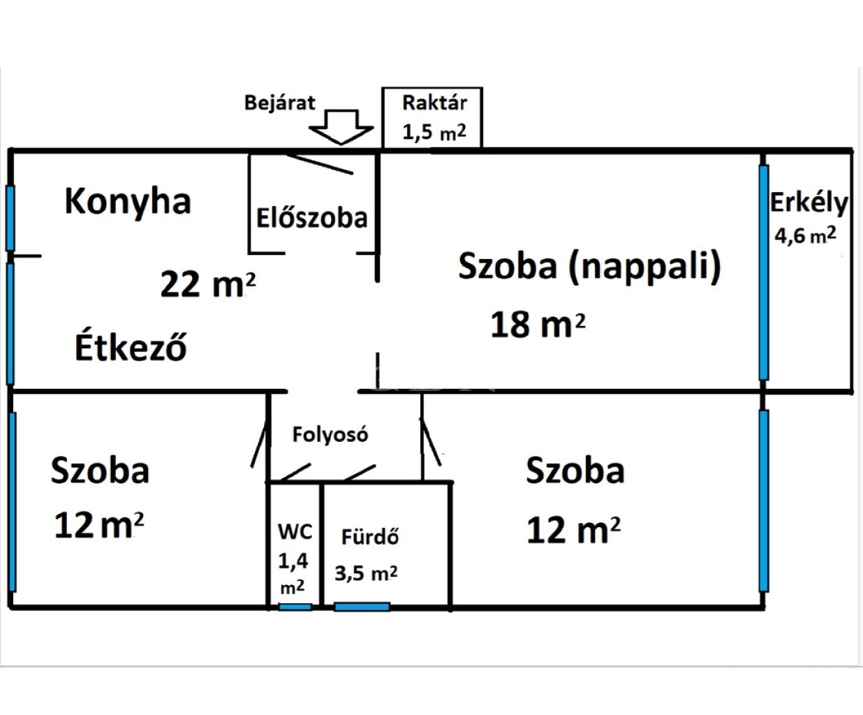 3 külön bejáratú szoba, laminált parkettával burkolva