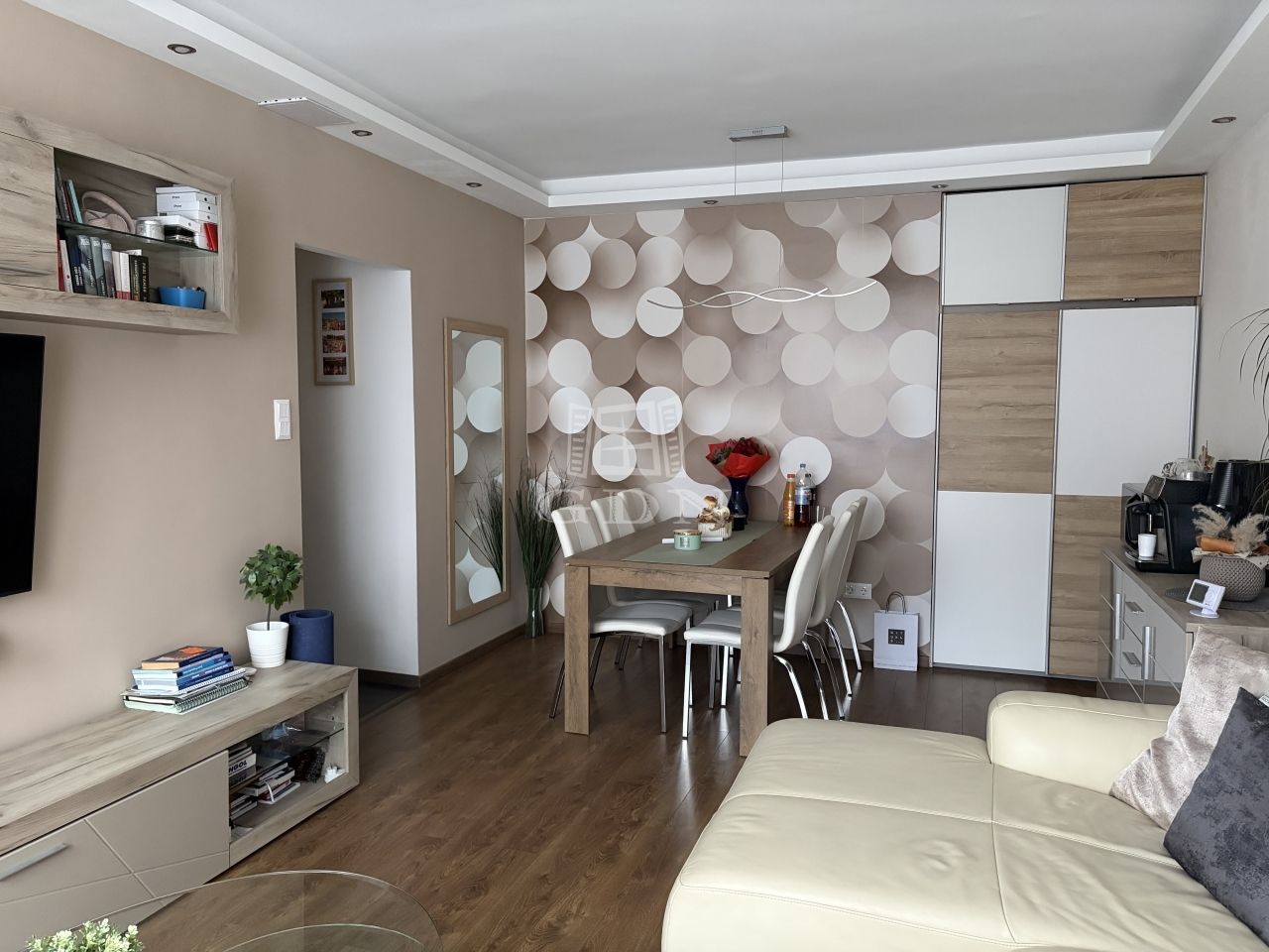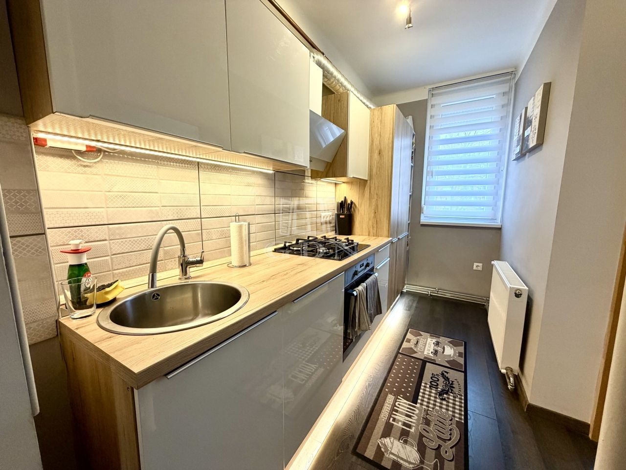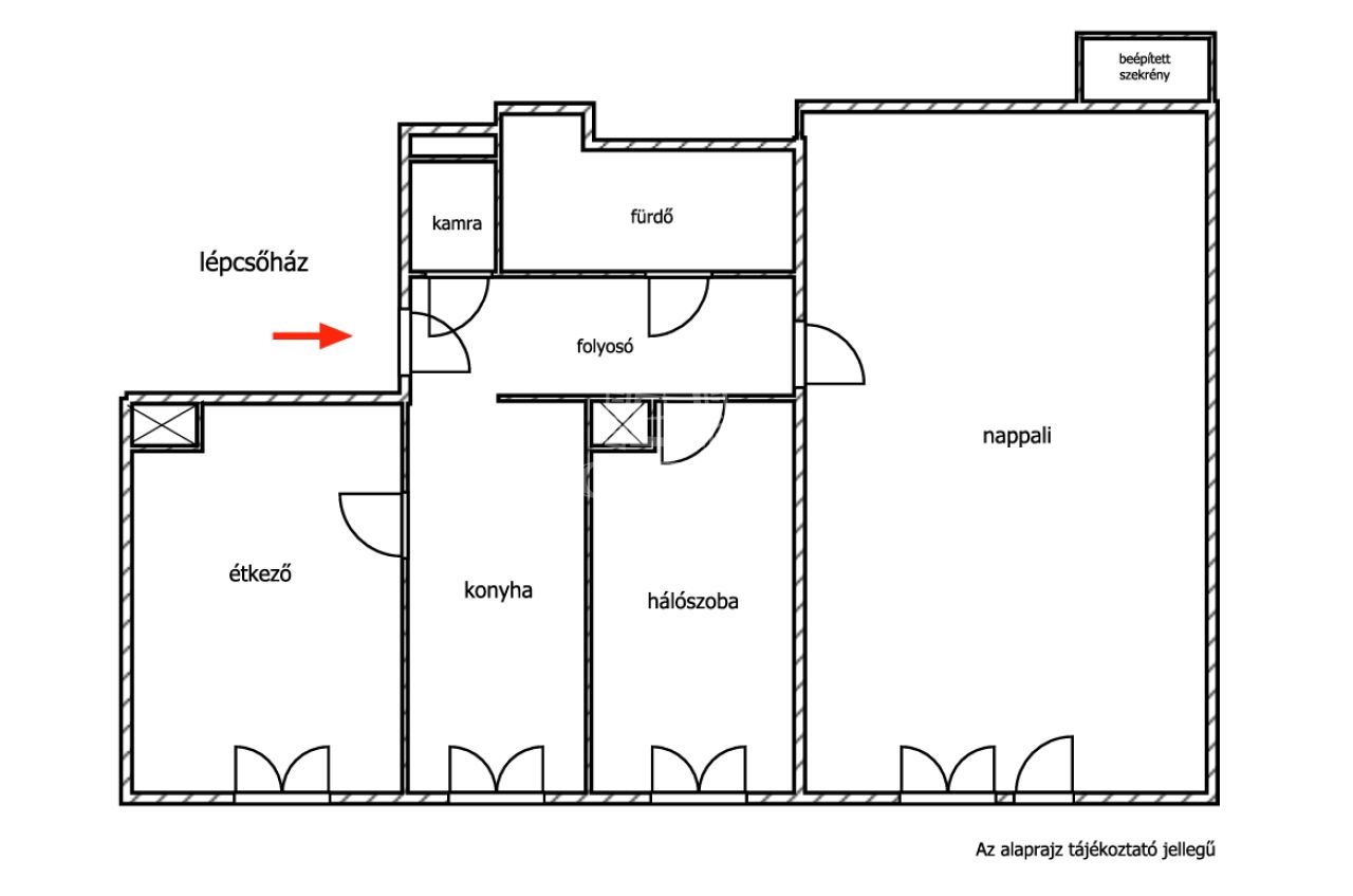 Műanyag nyílászárók, biztonsági bejárati ajtó, fa beltéri ajtók, berendezett konyha, gépestíve, amely az ár részét képezi.