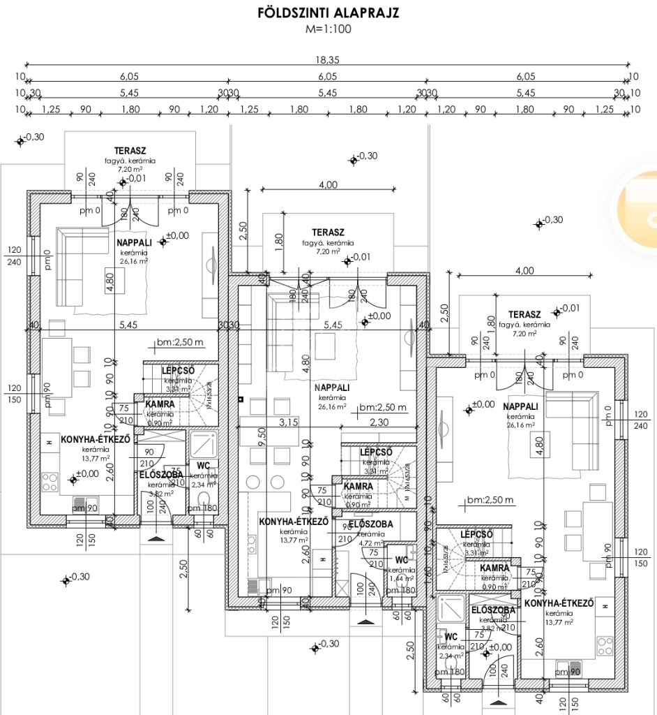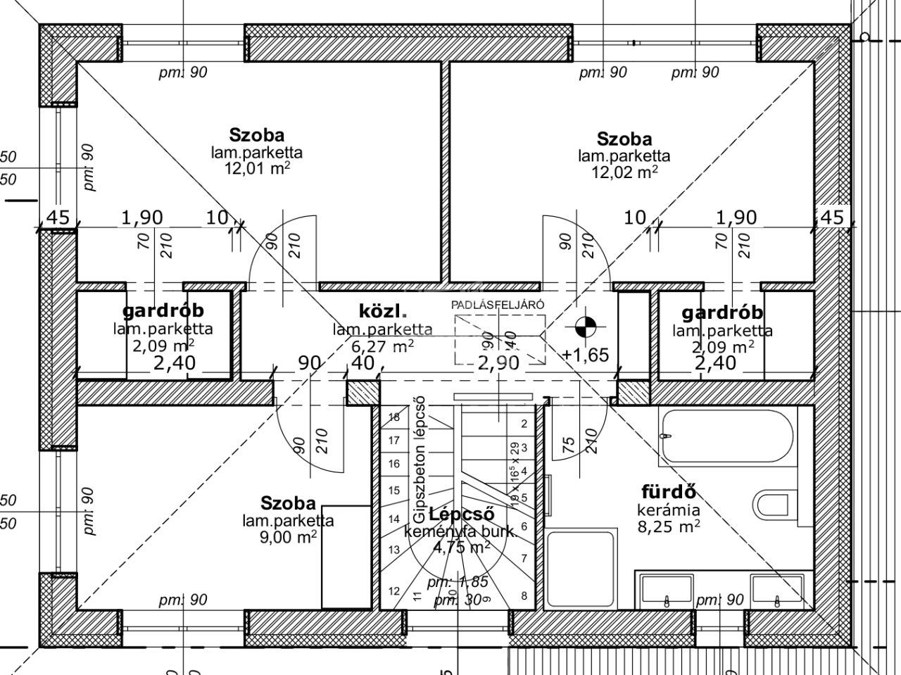 •Falazat: Kiváló hőszigetelő képességű Porotherm Klíma tégla, kiegészítve 10 cm vastag hőszigeteléssel.
