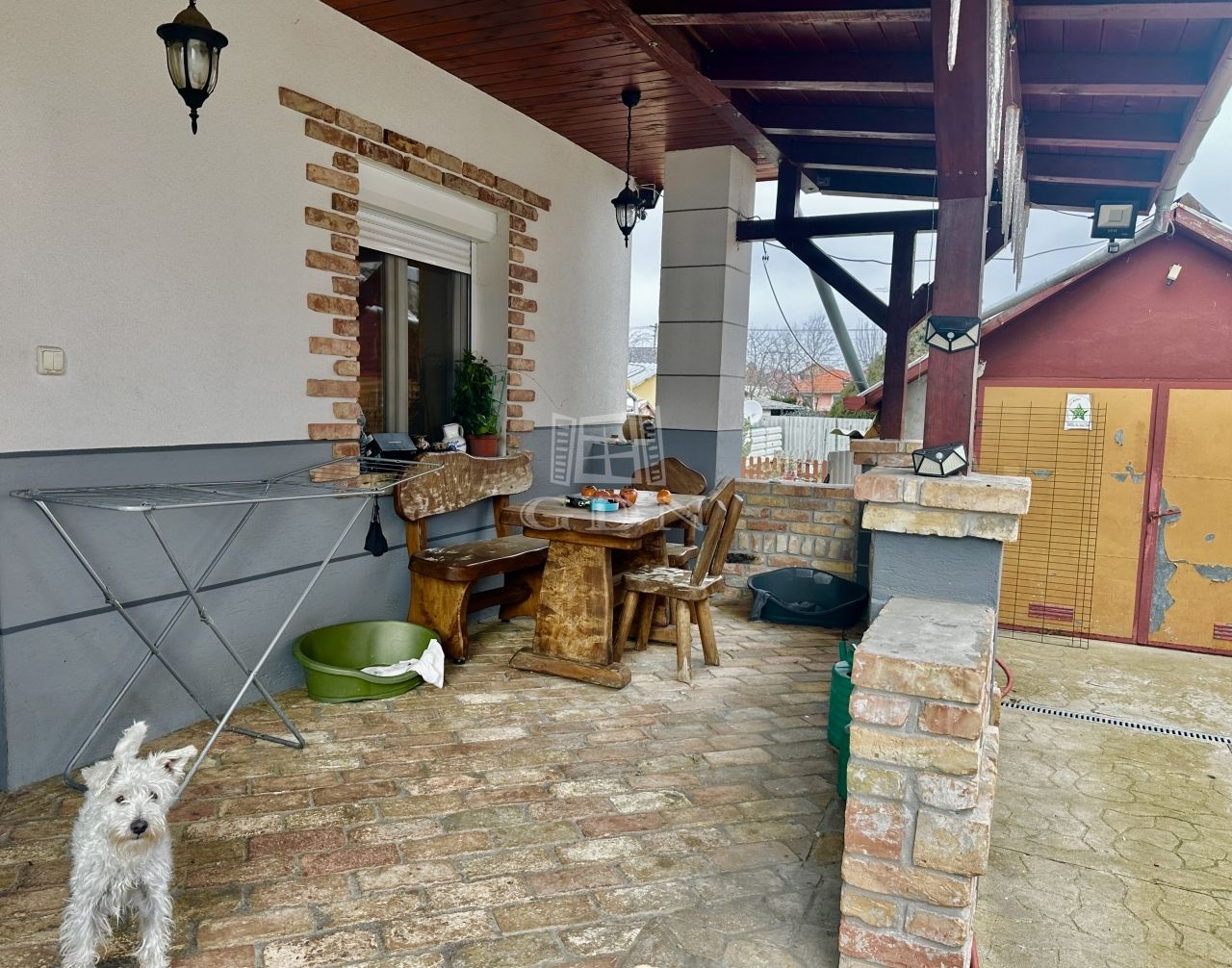 A házba, egy 25 m²-es hangulatos, szeletelt téglával díszített teraszon át jutunk be, ami tökéletes helyszín a pihenéshez és a baráti összejövetelekhez. Az ingatlan riasztó- és kamerarendszerrel ellátott.