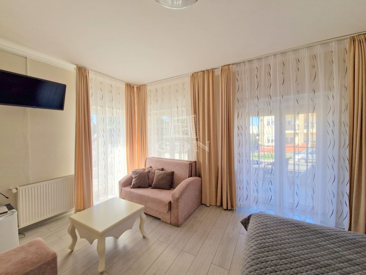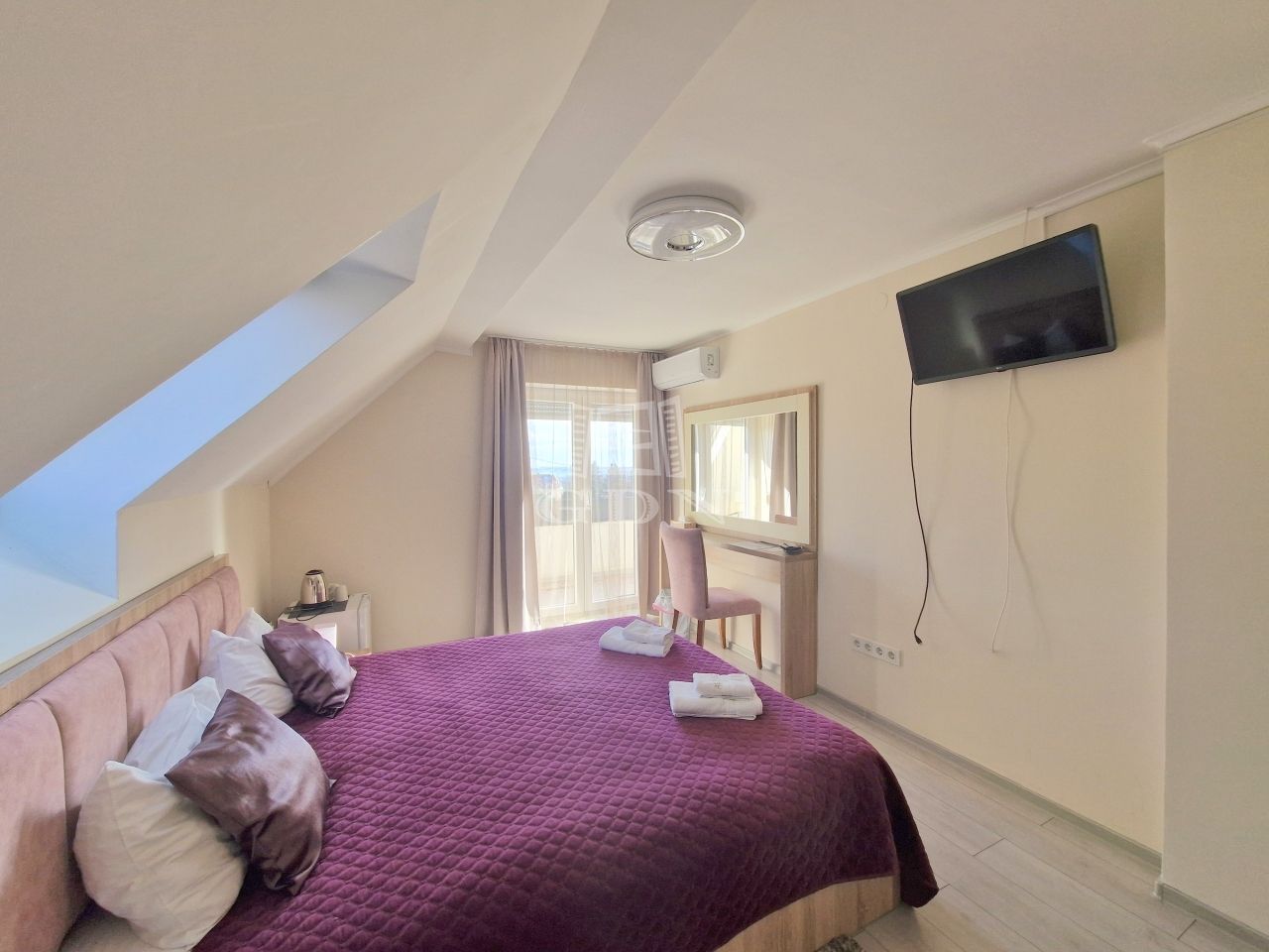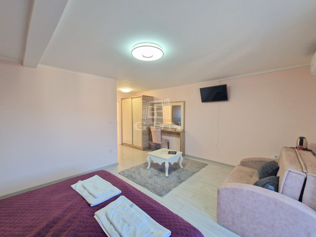 - törölközővel, hajszárítóval, szekrénnyel és hútőszekrénnyel felszerelt.