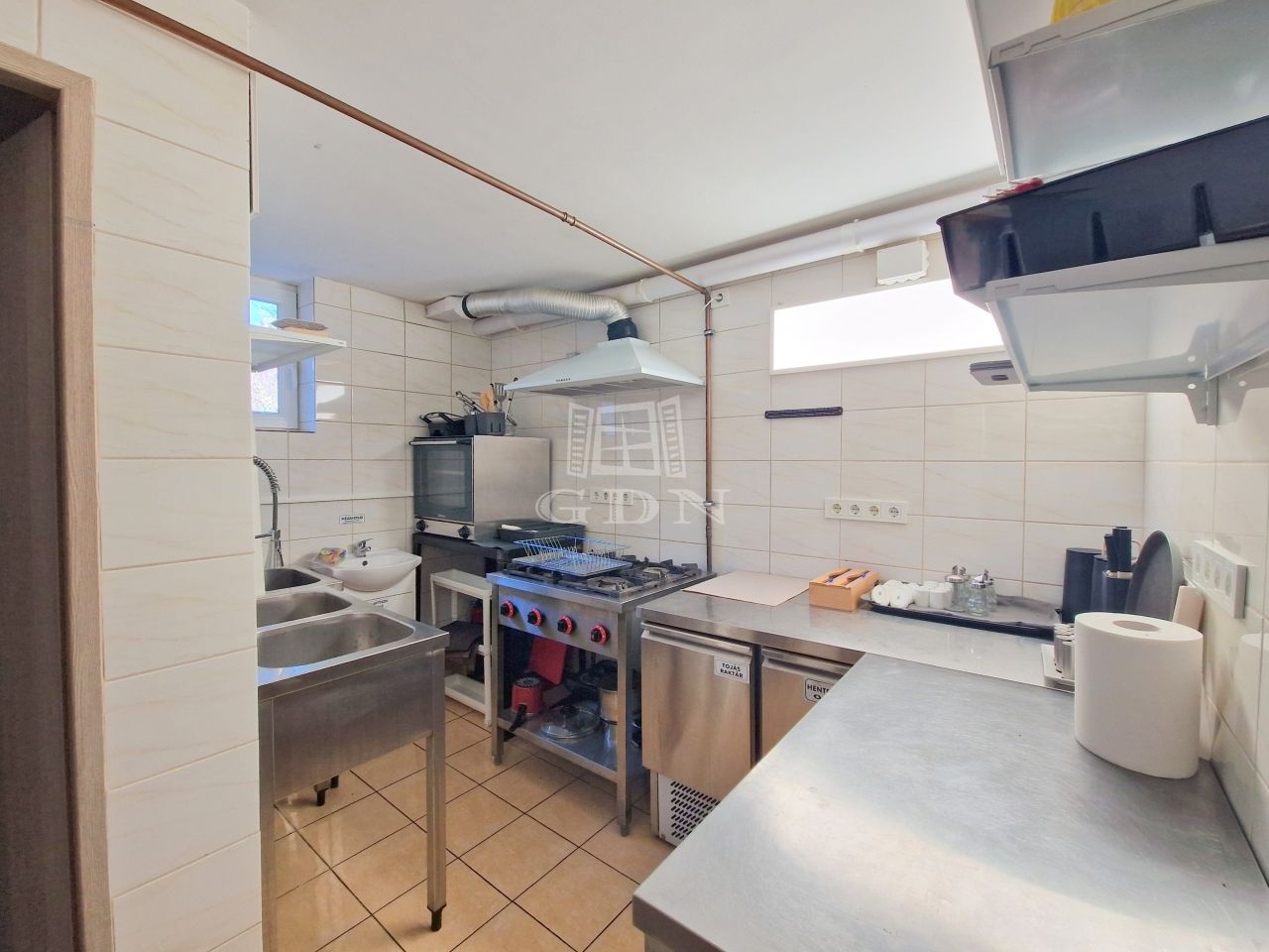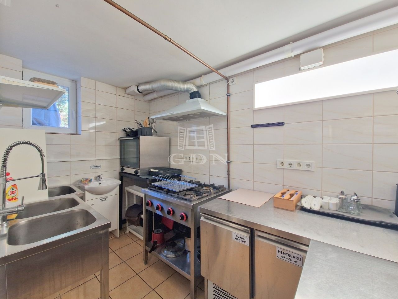Ezen a szinten található az ipari konyha, 2 db szociális helység, valamint 1 szoba, mely fürdőszobával ellátott.