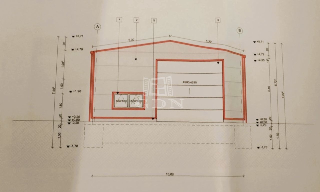 Az ingatlan rendelkezik egy érvényes építési tervvel ami egy 180nm alapterületű csarnok kivitelezését tartalmazza, valamint a csarnok nem telepített fém vázszerkezetét. Víz és áram elérhető távolságban bíztosított, a terület beépíthetősége 40%, vasútállomás 10perc sétatávolságra található.
