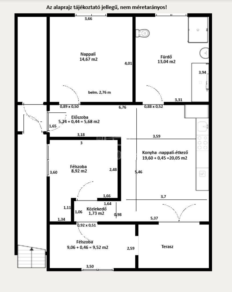 A bruttó méret a terasz 50%-át tartalmazza!
