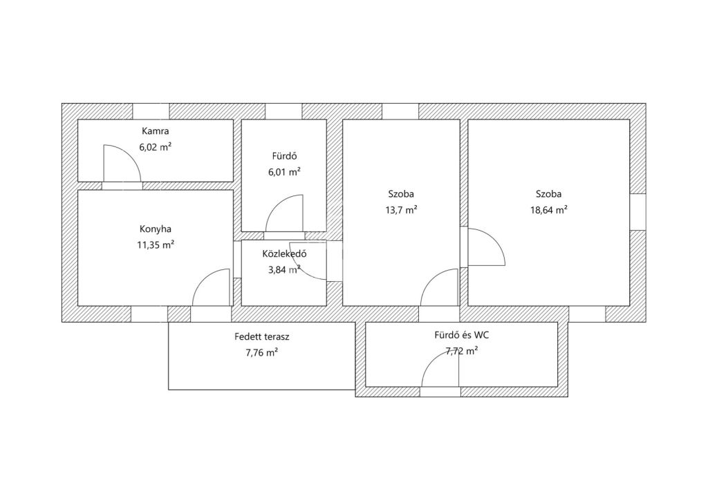 A körbekerített birtok központi részén, egy hatalmas diófa árnyékában található a 67 négyzetméter alapterületű, 2 szobás főépület. A ház vályog falazatú, amely híresen jó hőtartó képességgel rendelkezik: nyáron hűvös, télen jól tartja a meleget. Az épületen 1995-ben teljes tetőcserét hajtottak végre. Jelenlegi állapotát tekintve felújítandó, így az új tulajdonos saját igényei szerint alakíthatja ki vagy bővítheti álmai otthonát.