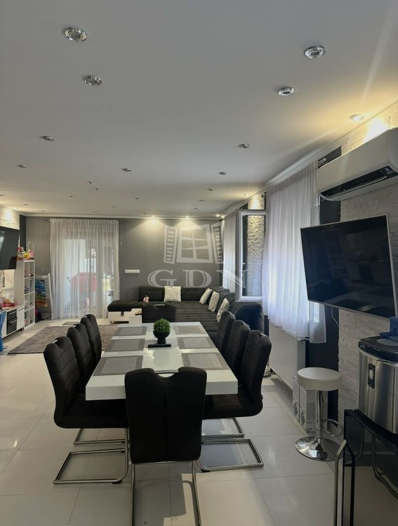 A lakható terület 148 nm, tágas amerikai konyhás nappali+ három háló, két fürdőszoba kádas-valamint zuhanyzós, kazánház, előtér-közlekedővel.