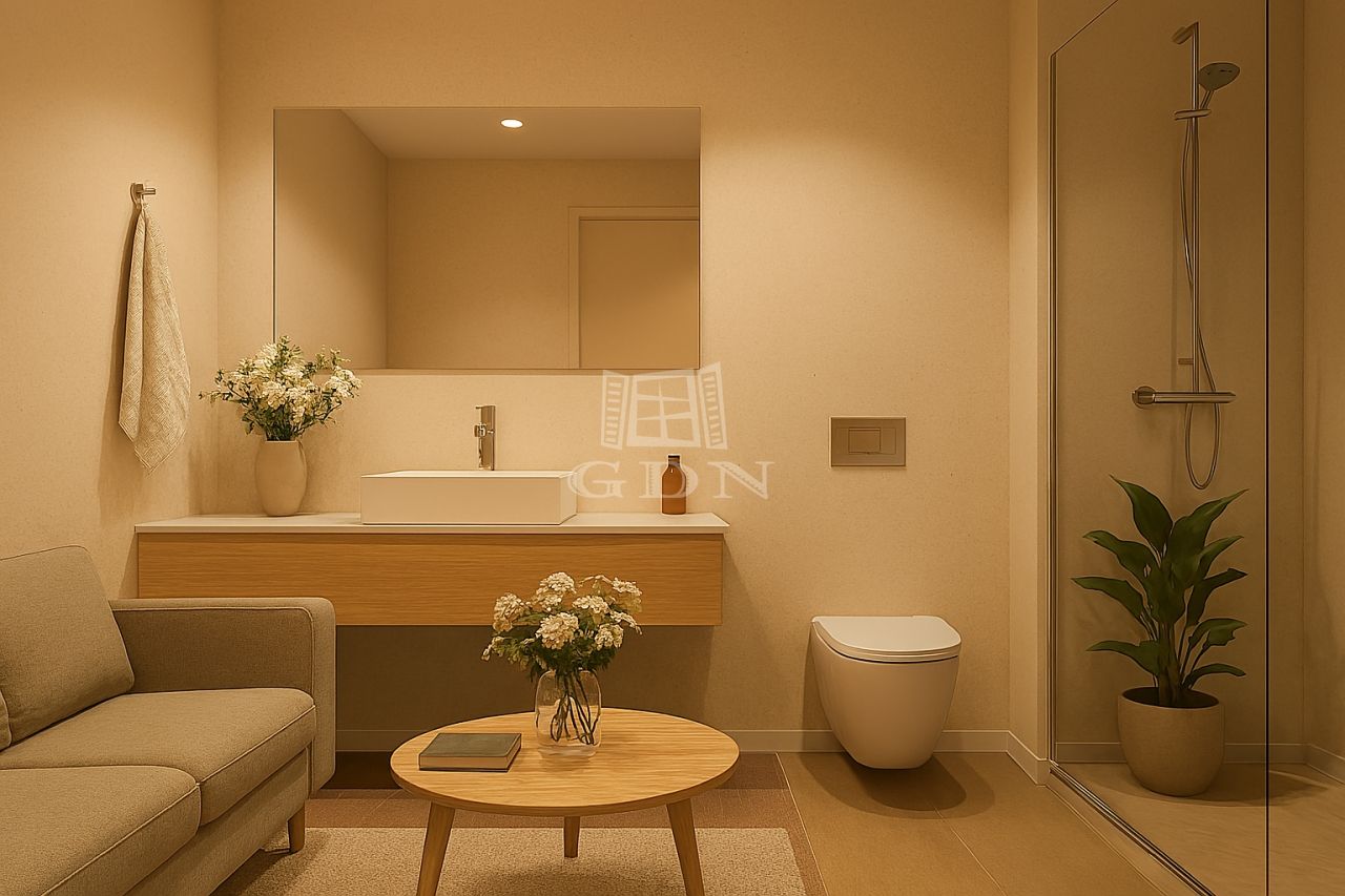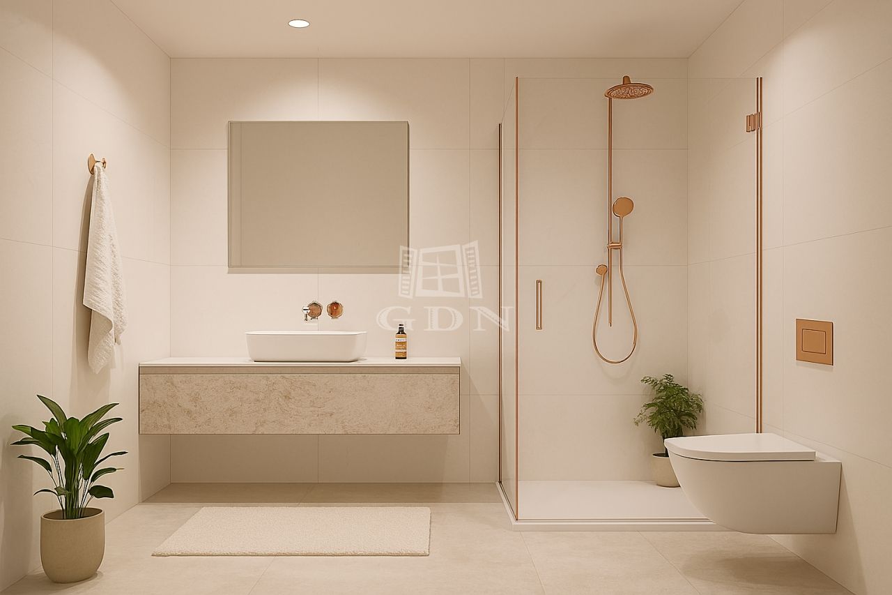 A jól átgondolt terveknek köszönhetően a lakás elosztása kiváló, az életterek kialakításánál a funkcionalitás dominált, kényelmes teret biztosítva leendő lakóinak.
