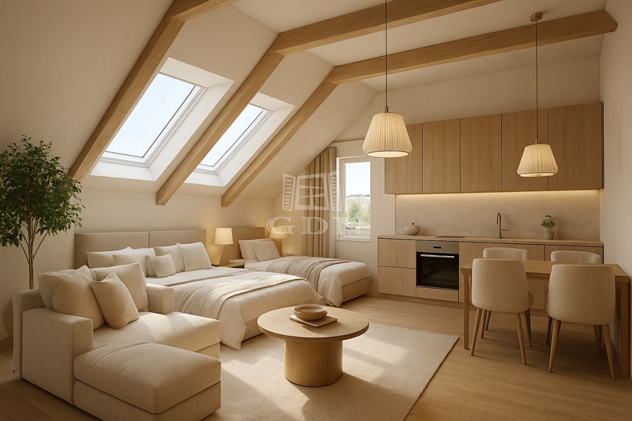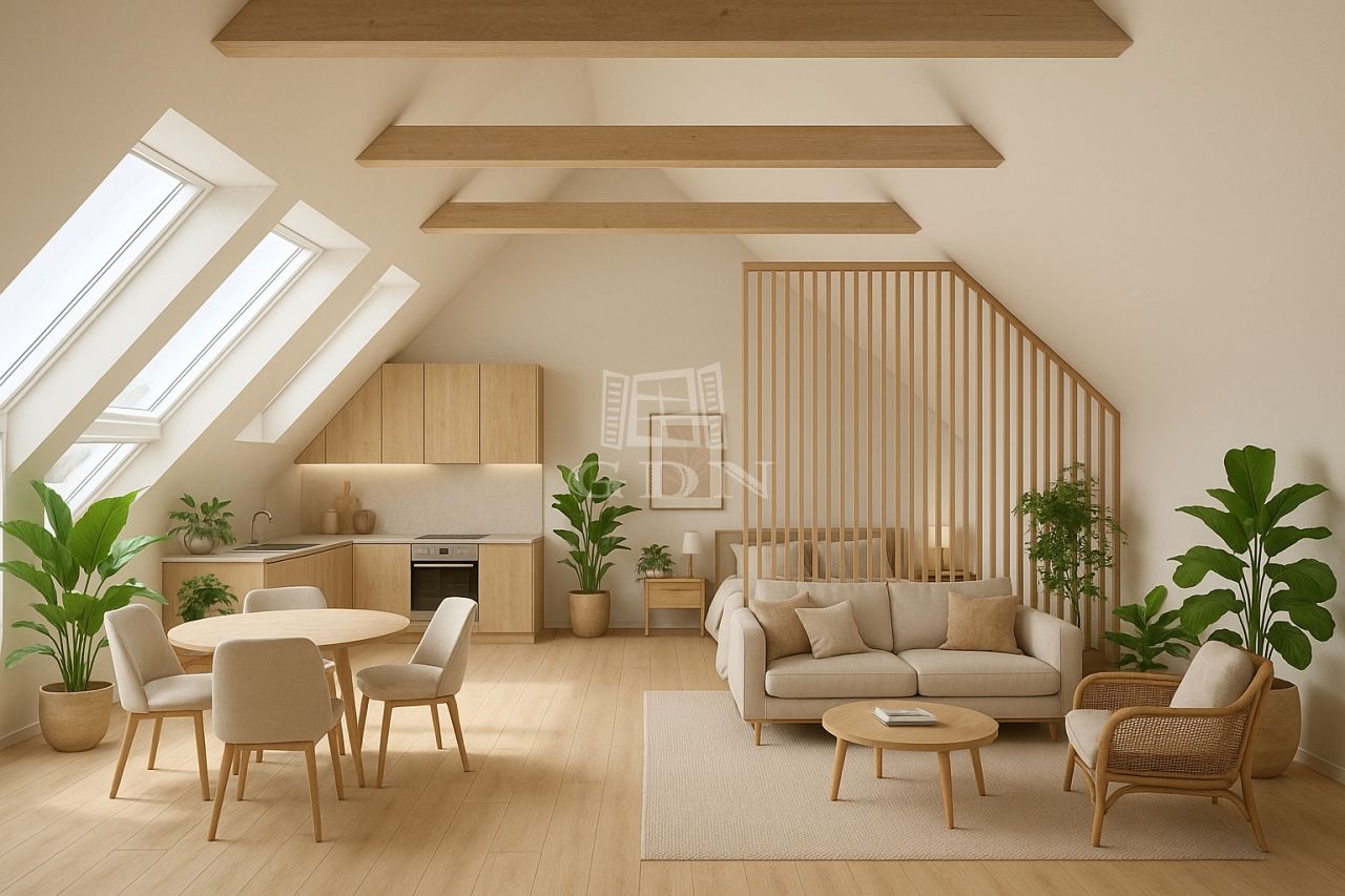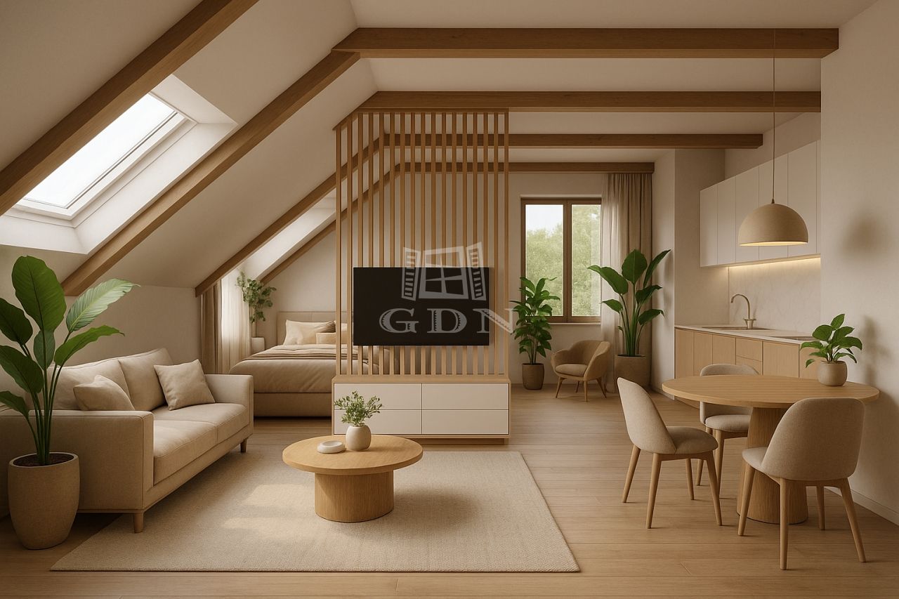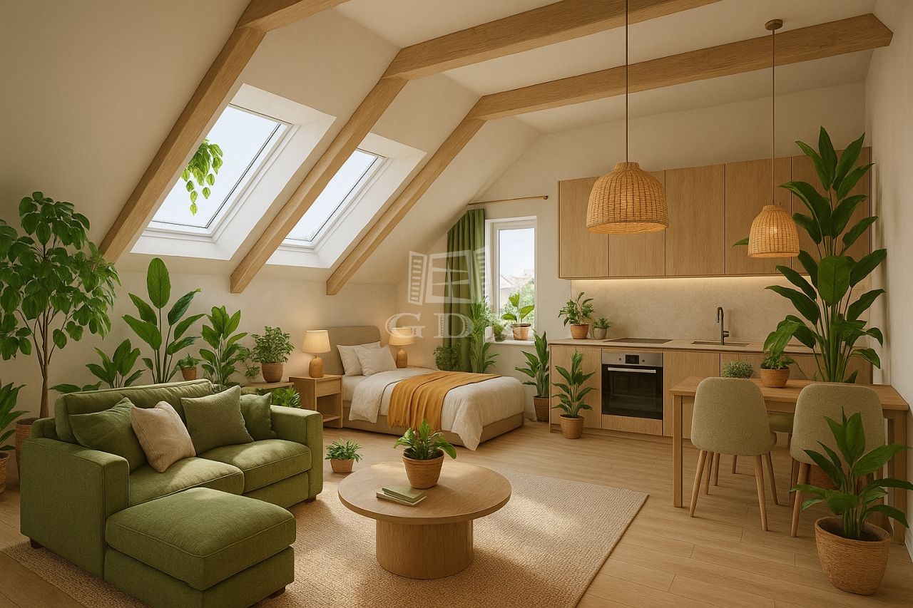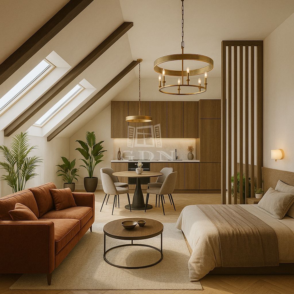 A lakás a tervek alapján amerikai konyhás nappali, hálófülke, fürdőszoba, és előtér térfelosztású.