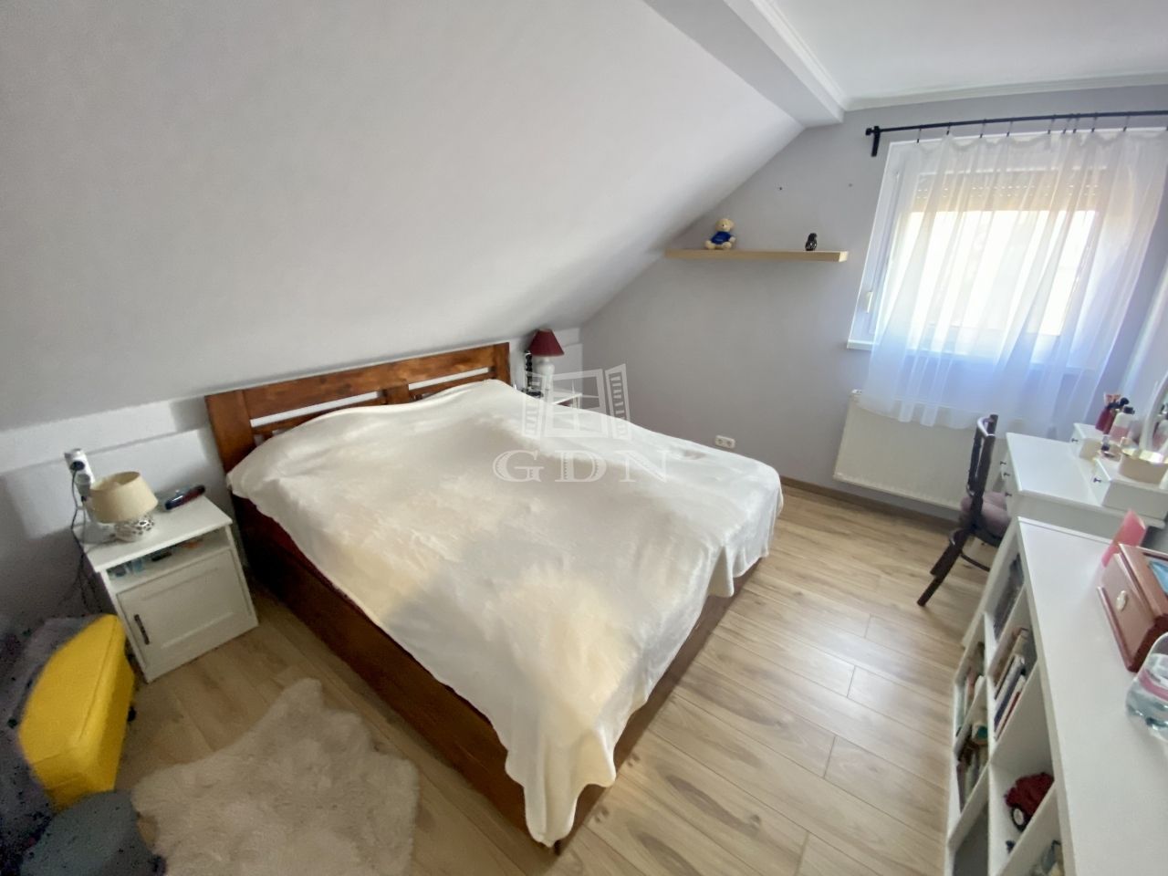 2002-ben épült, 136 nm-es, tetőtér beépítéses, amerikai konyhás nappali + 3 hálószobás, két fürdőszobás, cirkó fűtéses, klímás, műanyag thermo ablakos, külsőleg szigetelt, jó állapotú.