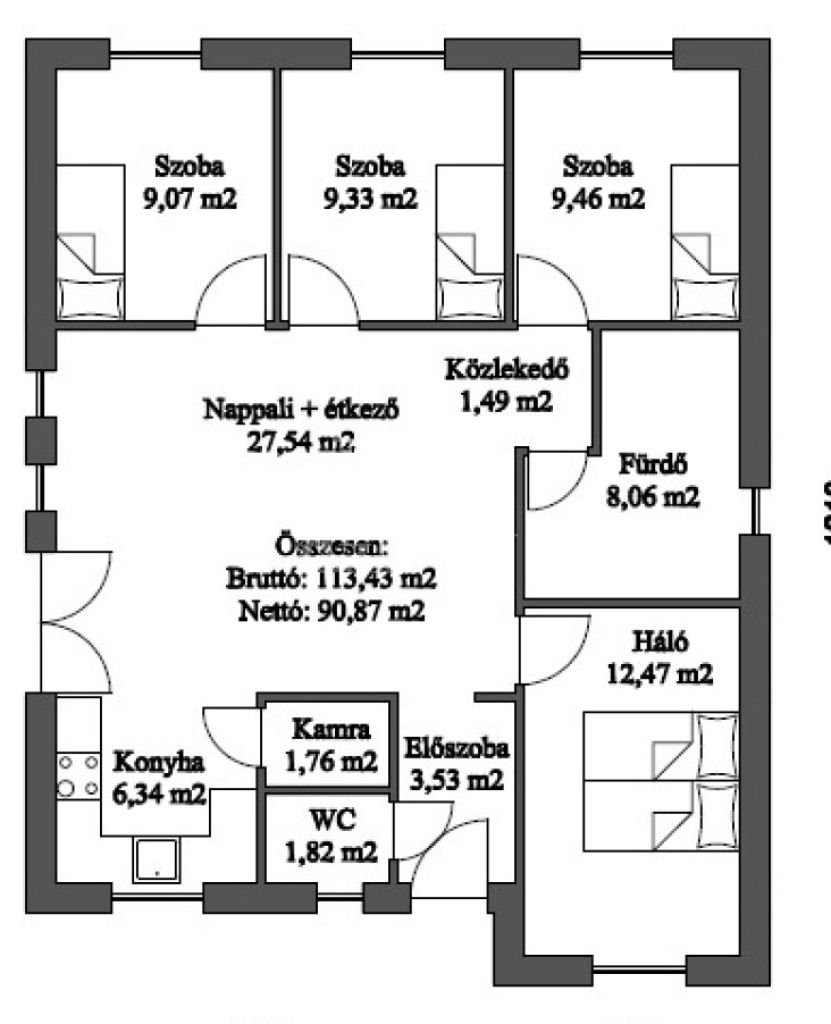 | 100 m2Alapterület | 4 Szoba |