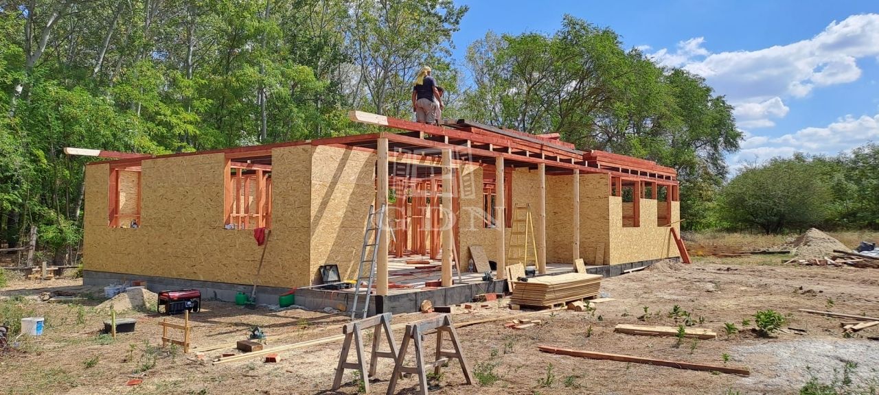 Kecskemét, Felsőszéktón, a Széles-köz közelében, rövid földút megközelítéssel, dinamikusan fejlődő, csendes, új családi házas övezetben saját, külön bejáratú 750 nm építési telken új építésű ikerháza eladó. Hőszigetelt könnyűszerkezetes falszerkezetű, 92 nm, hasznos lakóterű, nappali+3 szobás, 15 nm burkolt teraszos, 20 nm garázzsal. Nyílászárók fehér színű műanyagok, 3 rétegű üvegezéssel. Hőszivattyús fűtési rendszerrel, padlófűtéssel és 1 db hűtő-fűtő klímaberendezéssel kiegészítve. A vételár tartalmazza a tervezést, kertrendezést, füvesítést, térkövezést, és a kerítést is.