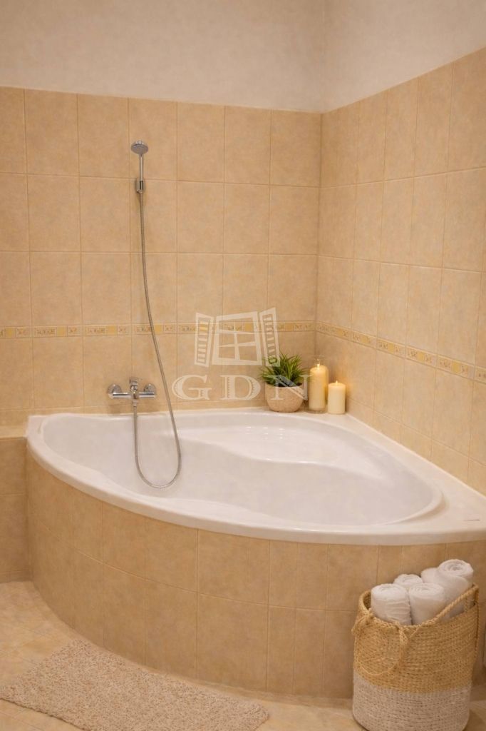 - Tágas fürdőszoba sarokkáddal, Wc külön helyiségben.