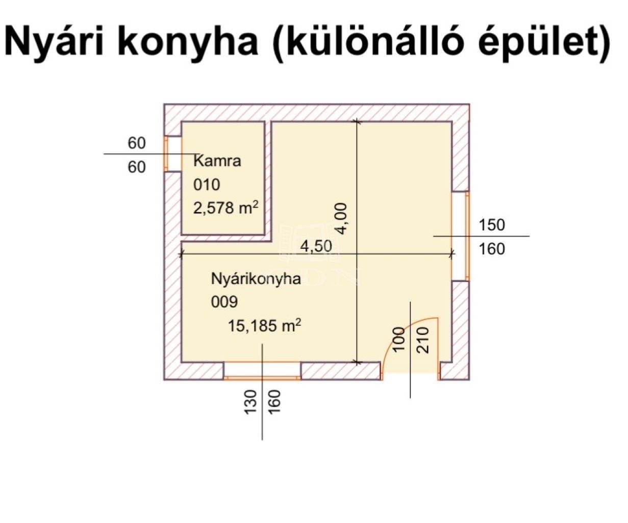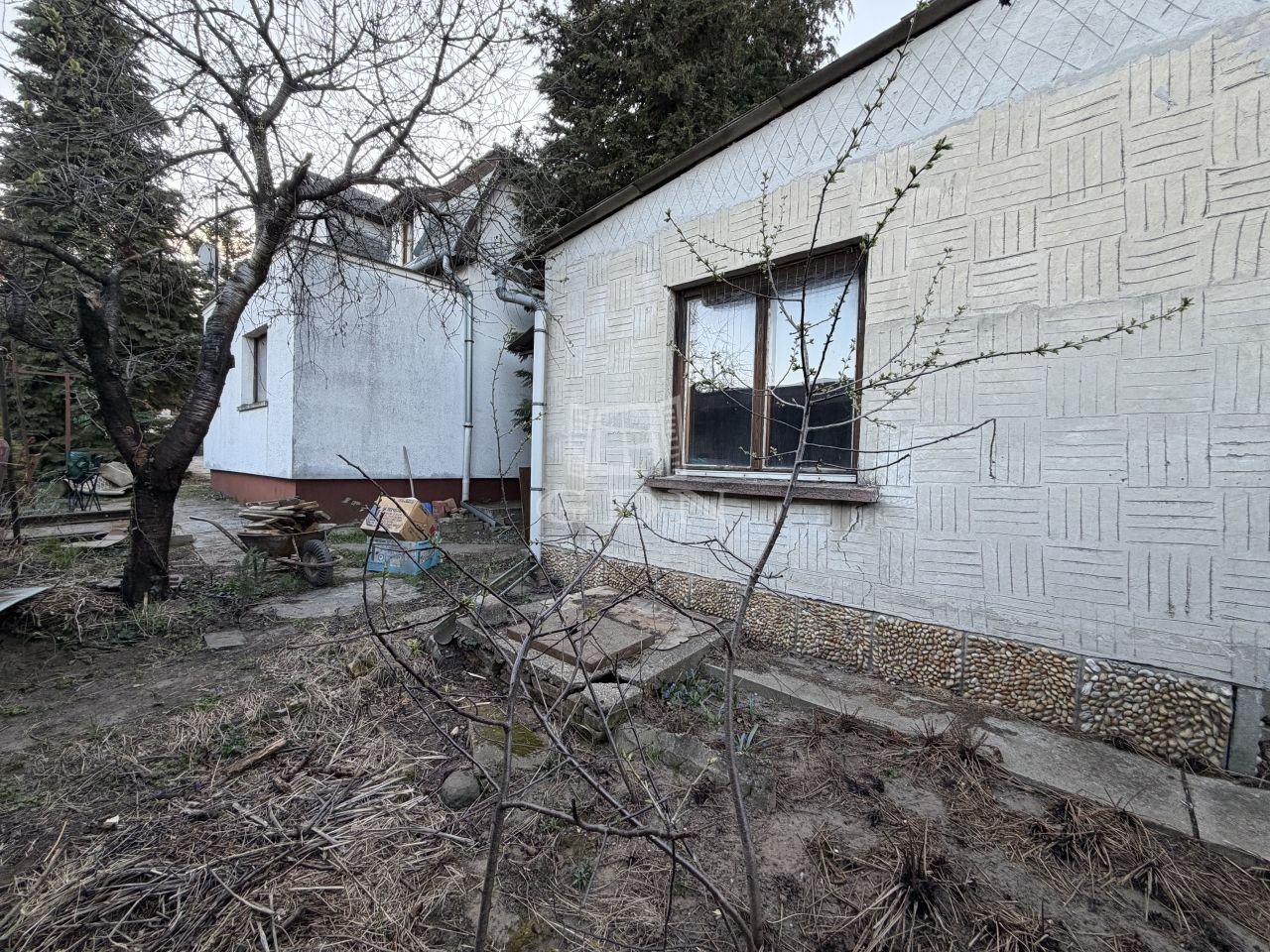 A háznak az egyik oldalán további lehetőség van még egy szoba kialakítására, mivel jelenleg szintén téglából hozzá van építve egy körülbelül 15 nm nagyságú tároló (normál belmagassággal).