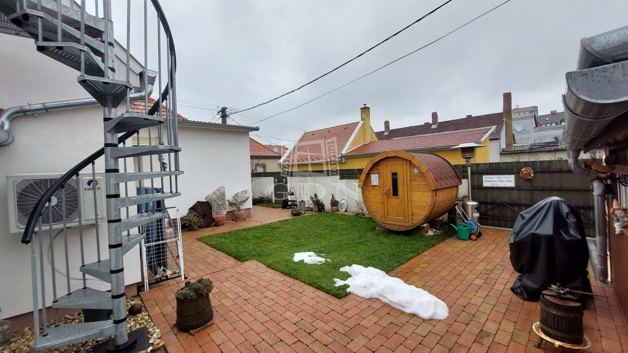 A gondosan kialakított udvaron autóbeálló, tároló, kerti lak és egy külön vendéglakás is helyet kapott (14 m2), mely saját fürdővel és teakonyhával rendelkezik.