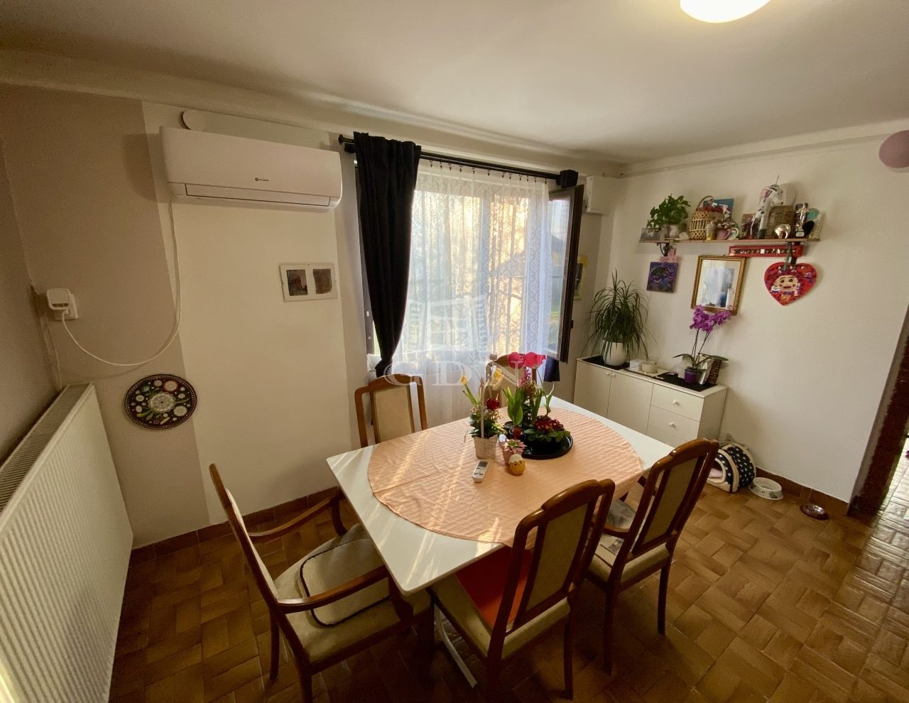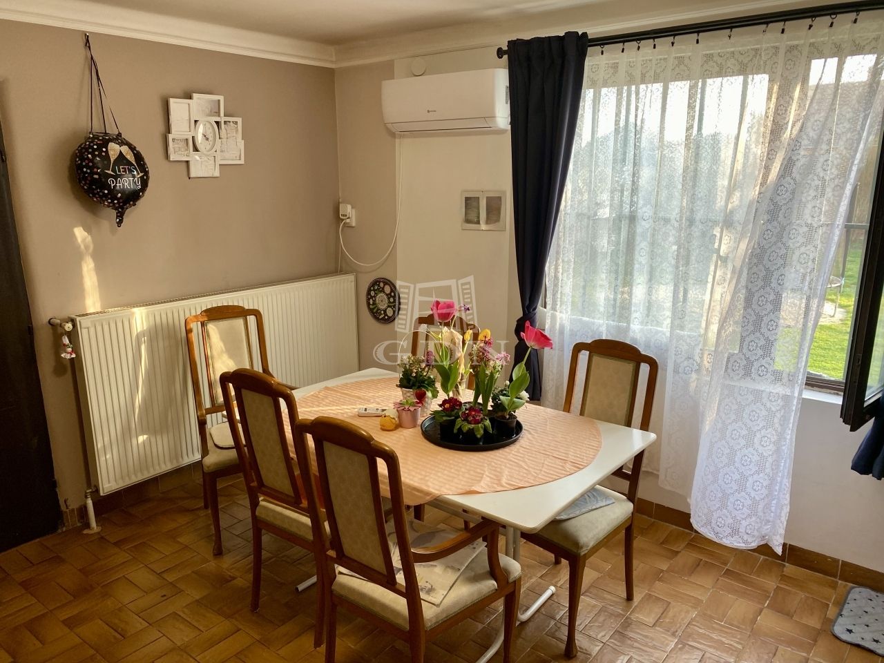 A 143 négyzetméteres lakóterület egy 311 négyzetméteres, rendezett telken helyezkedik el, amely elegendő teret biztosít pihenéshez, kertészkedéshez vagy akár családi programokhoz is. Az ingatlan belső elrendezése átgondolt és praktikus: a földszinten egy tágas nappali, konyha, étkező, kamra, fürdőszoba, valamint külön WC kapott helyet, míg a tetőtérben három és fél szoba, valamint egy fürdőszoba WC-vel került kialakításra. A ház így kényelmes életteret nyújt akár nagyobb családok számára is.