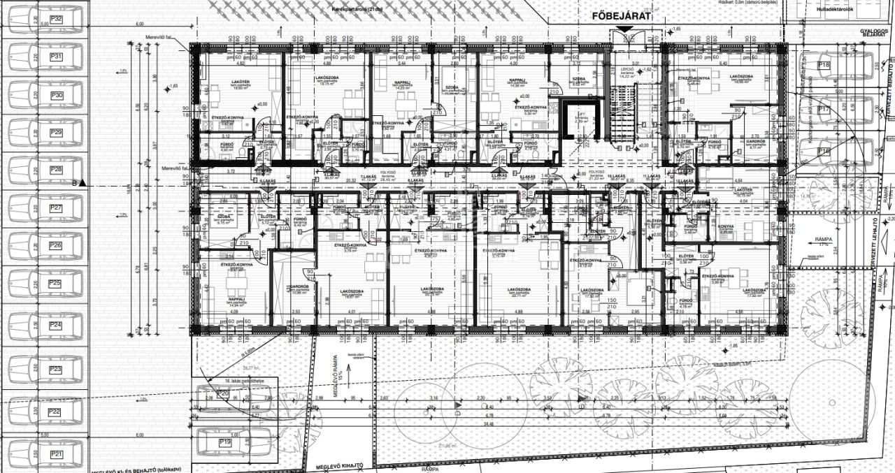 A társasházban 31 db lakás kerül megépítésre, a földszinti és első emeleti lakások erkély nélküliek, a 2 emeleti lakások terasz kapcsolattal rendelkeznek.