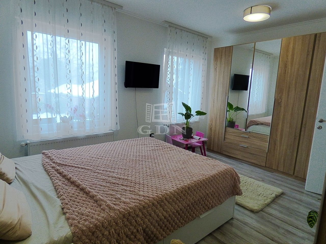 Műanyag thermo nyílászárókkal, redőnnyel, rovarhálóval, kondenzációs gáz cirkóval, klímával felszerelt.