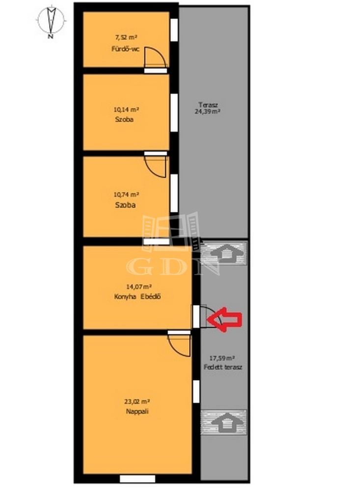 | 60 m2Alapterület | 1 + 2 Szoba |