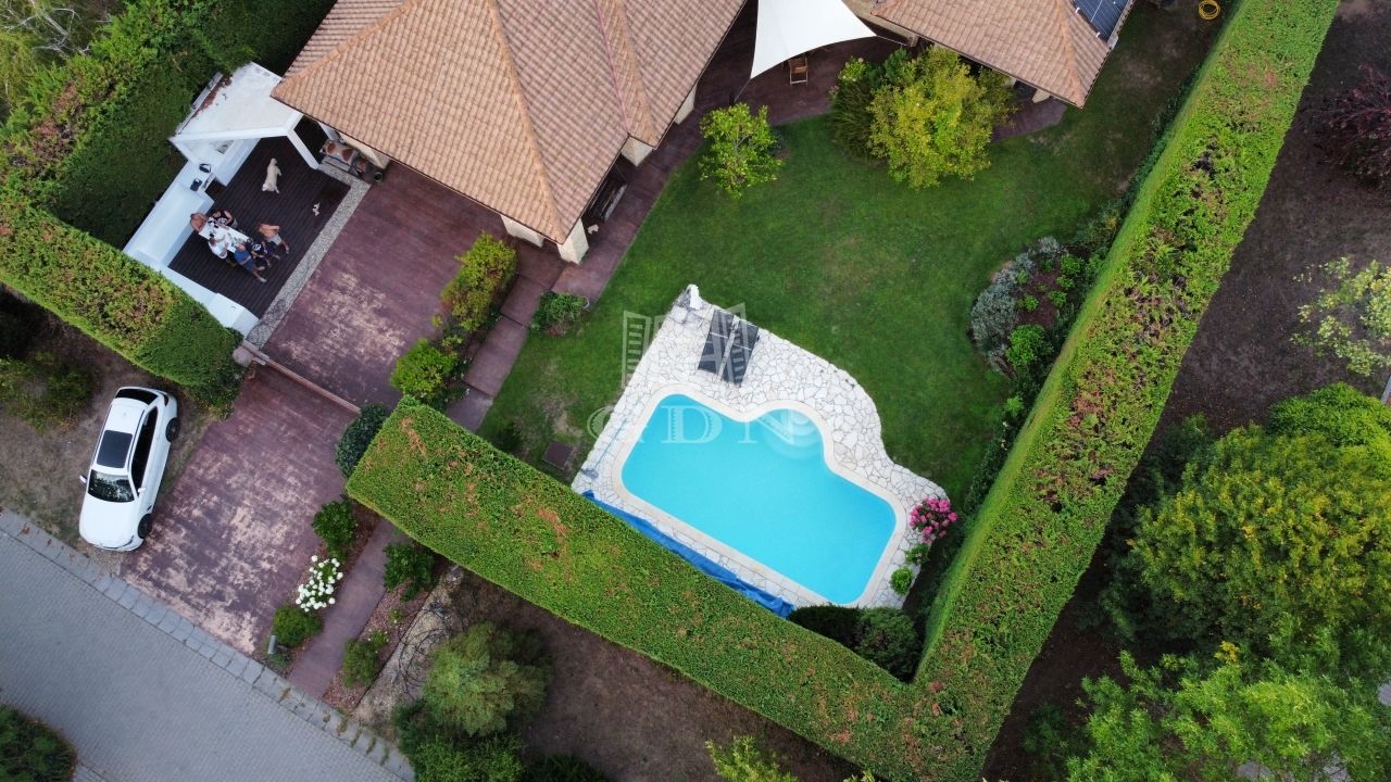 Őrzött, portaszolgálattal működő biztonságos, valódi zöldövezettel rendelkező lakóparkban elhelyezkedő, kerítéssel körbekerített önálló családi ház 2003. évben épült, és azóta több esztétikai és műszaki felújításon esett át, így biztosítva a korszerű, és esztétikus állag megőrzését.