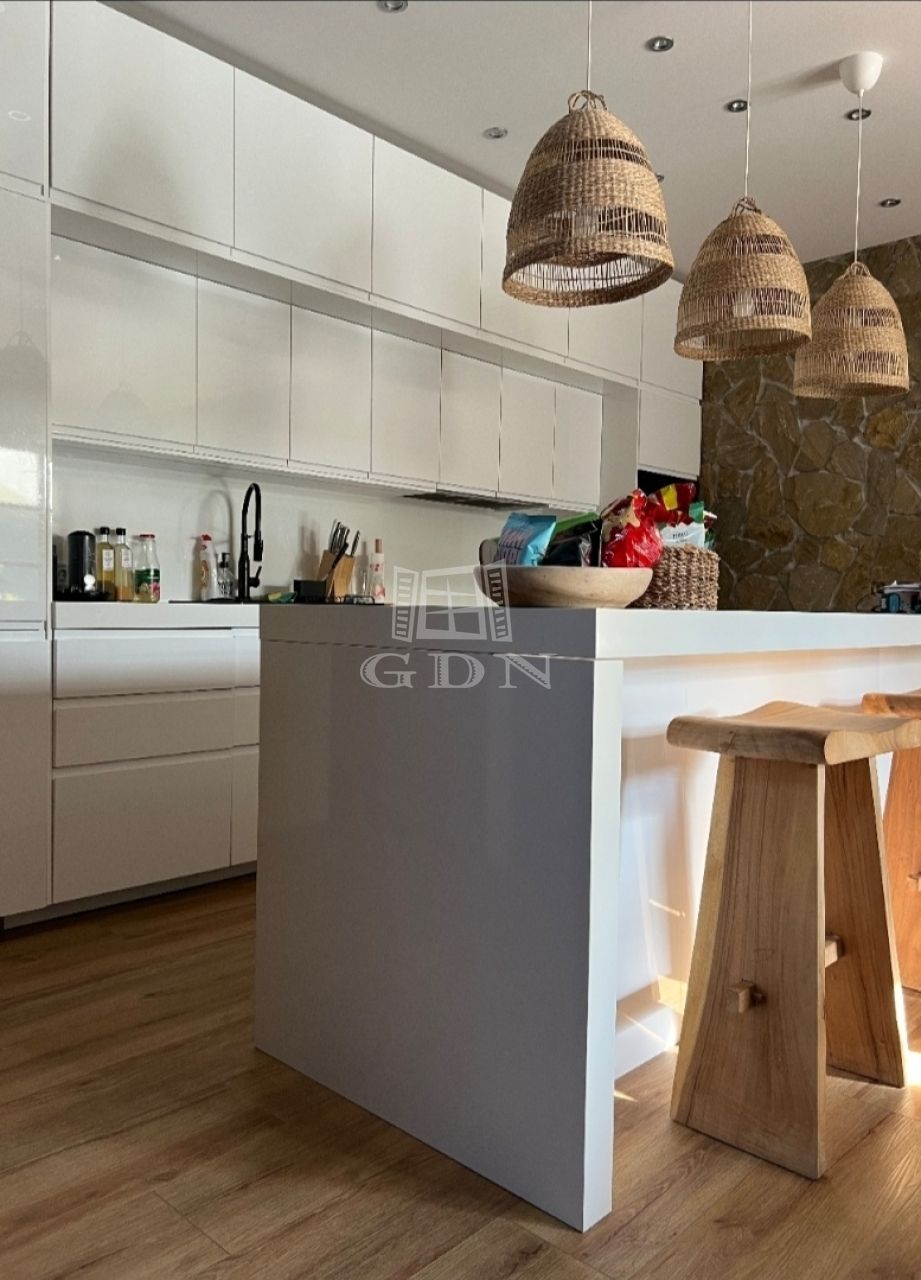 Földszint: előtér, 88 m²-es amerikai konyhás nappali, 2 hálószoba, vendég mosdó, fürdőszoba. Plusz, a házzal egybeépített, 2 beállós zárt garázs.