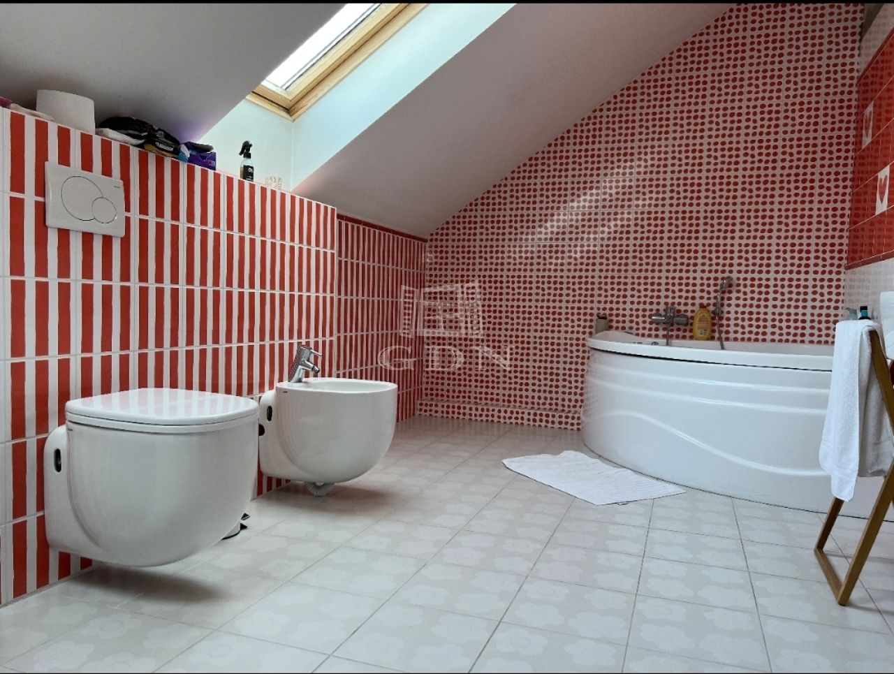 Beépített tetőtér: 2 hálószoba, fürdőszoba,WC-vel, gradrób, nappali légtér.