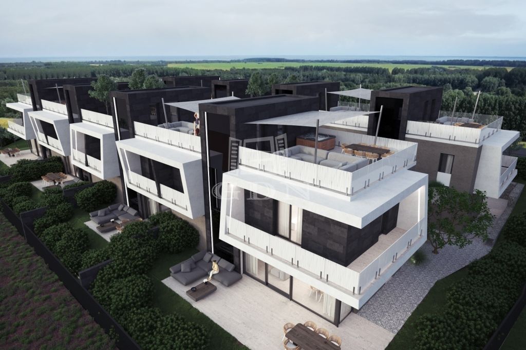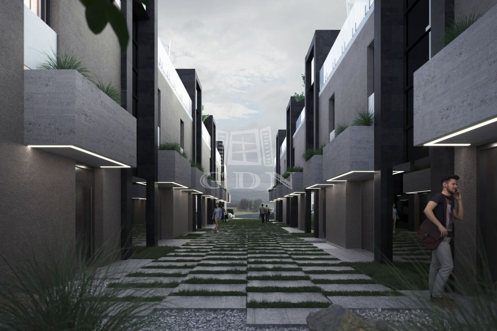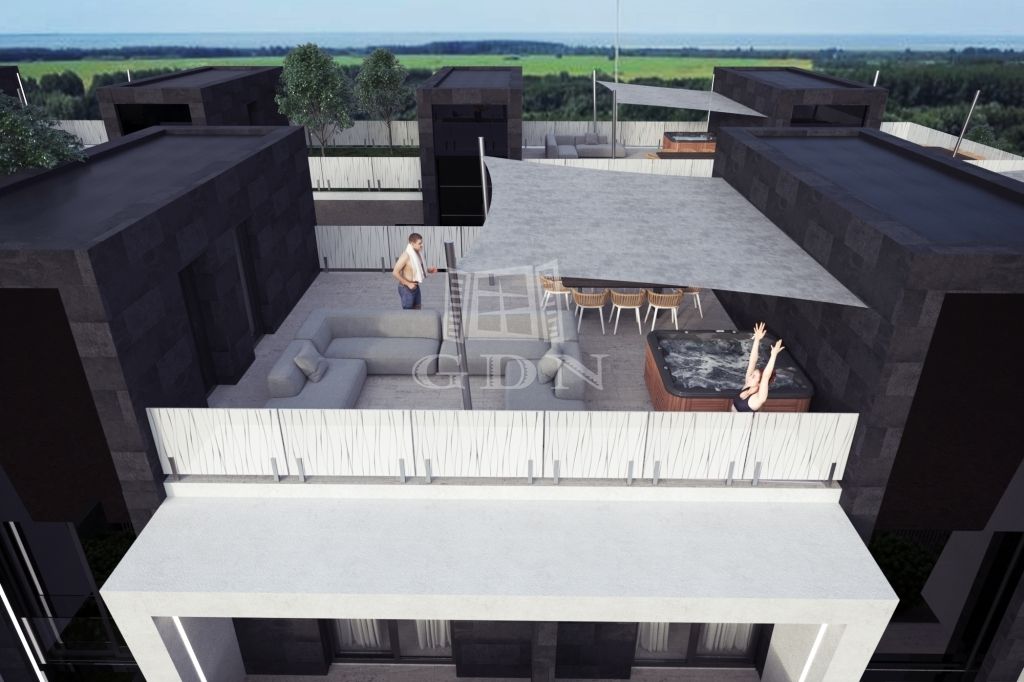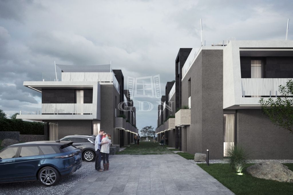 A projektben 2 tömbből álló 5 illetve 4 lakásos sorházat valósítunk meg. Földszinttel, emelettel és egy exkluzív tetőterasszal, ezen felül az exkluzivitást emelve a teraszok és erkélyek rozsdamentes vonalmenti üvegkorlátot kapnak. A lakáshoz tartozik egy fedett gépkocsi beálló. Egyedi igény alapján vásárolható a lakásokhoz külső gépkocsibeálló. Mindegyik lakás saját lépcsőházzal rendelkezik, ami biztosítja a feljutást egészen a tetőteraszig.