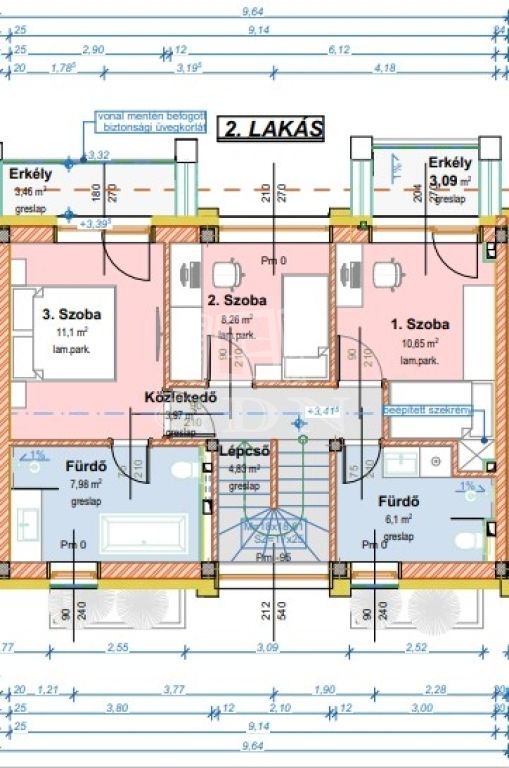 Fűtőtest: Az ingatlanokban padlófűtés és oldalfali fain coil rendszer készül.