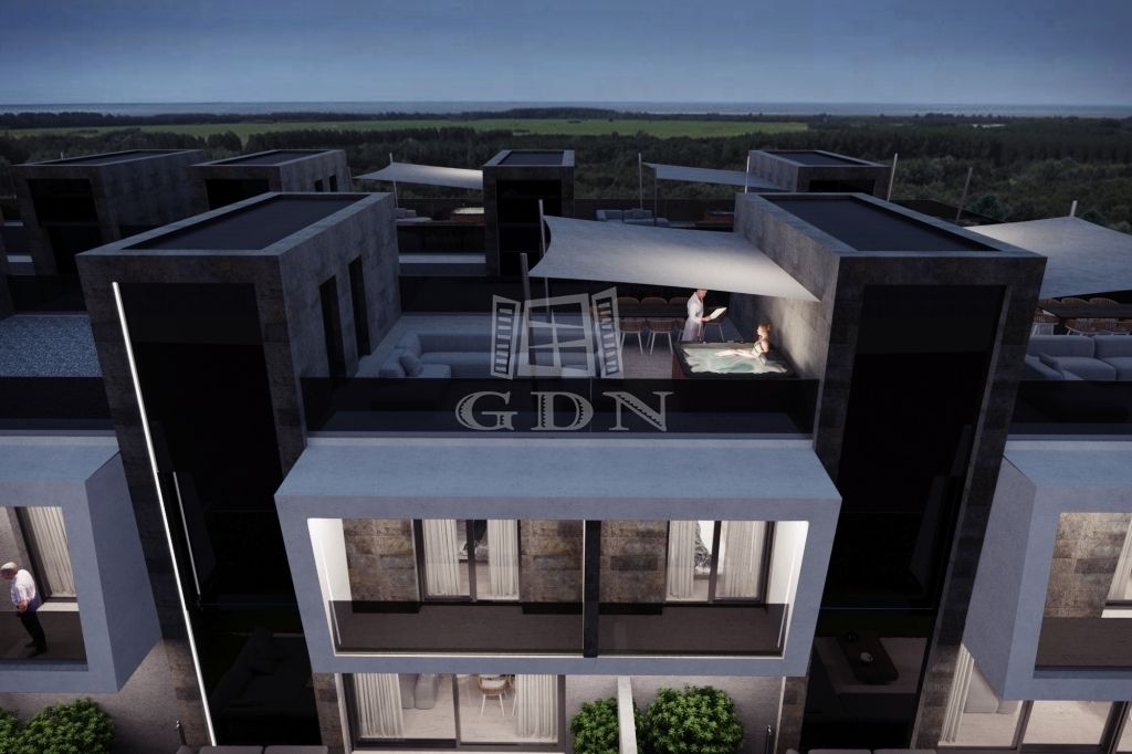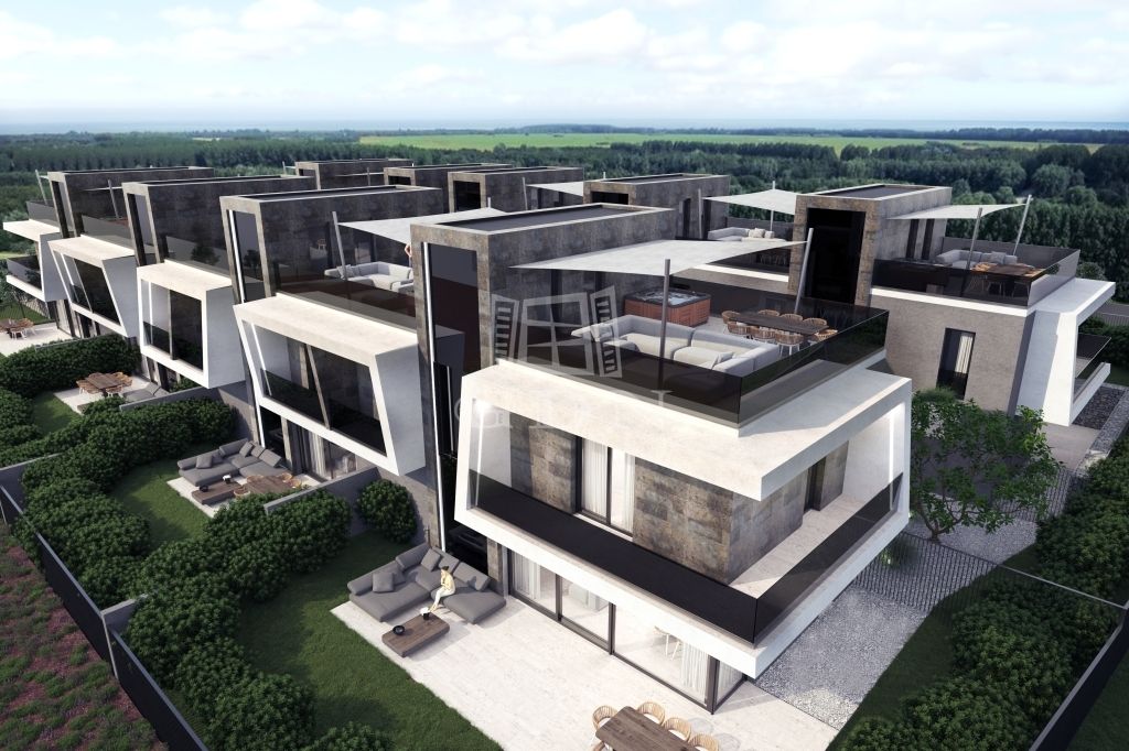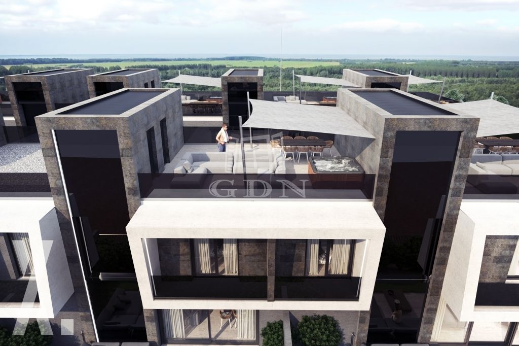A projektben 2 tömbből álló 5 illetve 4 lakásos sorházat valósítunk meg. Földszinttel, emelettel és egy exkluzív tetőterasszal, ezen felül az exkluzivitást emelve a teraszok és erkélyek rozsdamentes vonalmenti üvegkorlátot kapnak. A lakáshoz tartozik egy fedett gépkocsi beálló. Egyedi igény alapján vásárolható a lakásokhoz külső gépkocsibeálló. Mindegyik lakás saját lépcsőházzal rendelkezik, ami biztosítja a feljutást egészen a tetőteraszig.