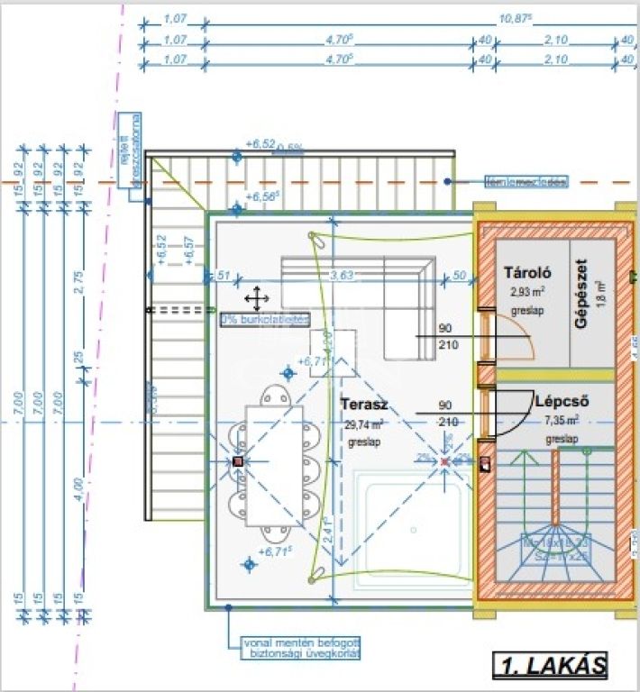 Megvételre kínálok Mogyoród kiváló részén, a Napraforgó Parkban lévő, luxus kivitelezésű és felszereltségű sorházi, újépítésű nettó 126,77 nm, bruttó 168,9 nm-es lakást (1. lakás), melyhez 103,42 nm privát kert tartozik.