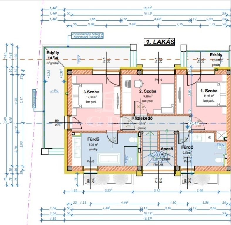 Fűtőtest: Az ingatlanokban padlófűtés és oldalfali fain coil rendszer készül.